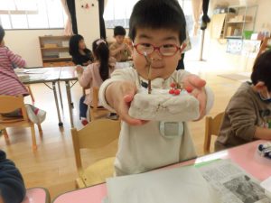 でもね、今日の粘土は固まる粘土、紙粘土だよ。