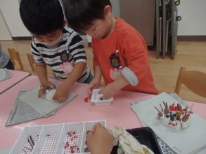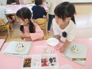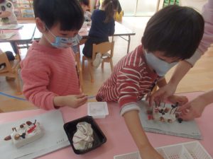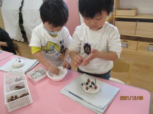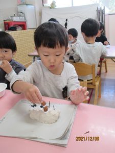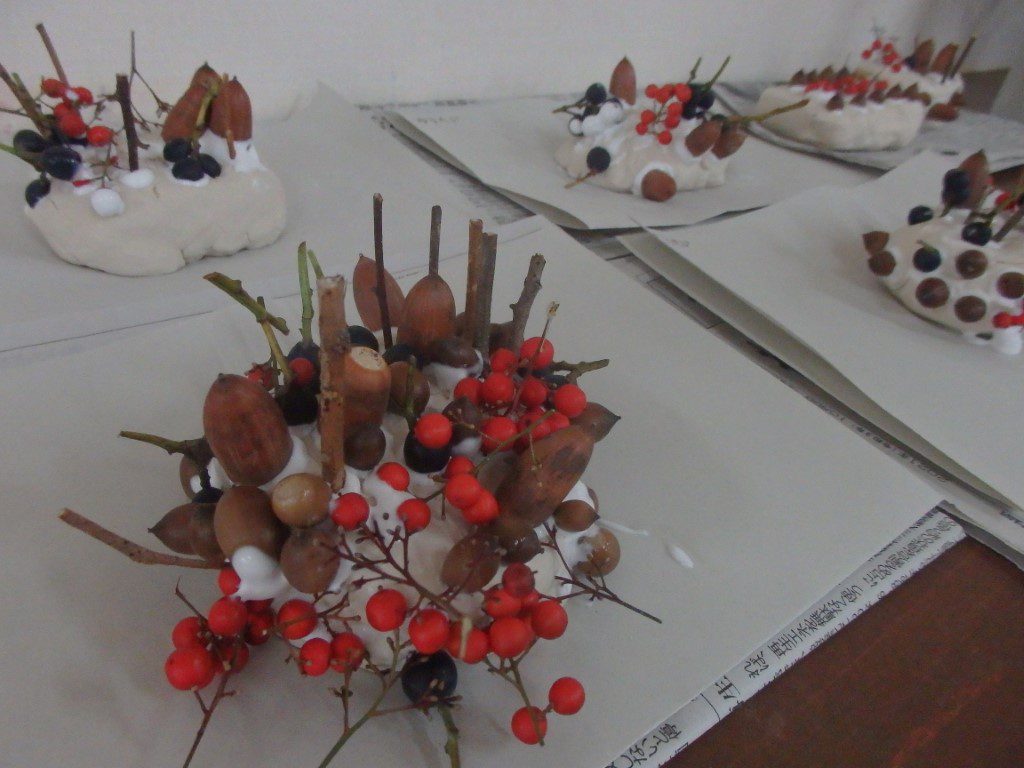飾りの木の実や枝は、ボンドをたっぷりつけて…