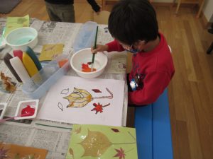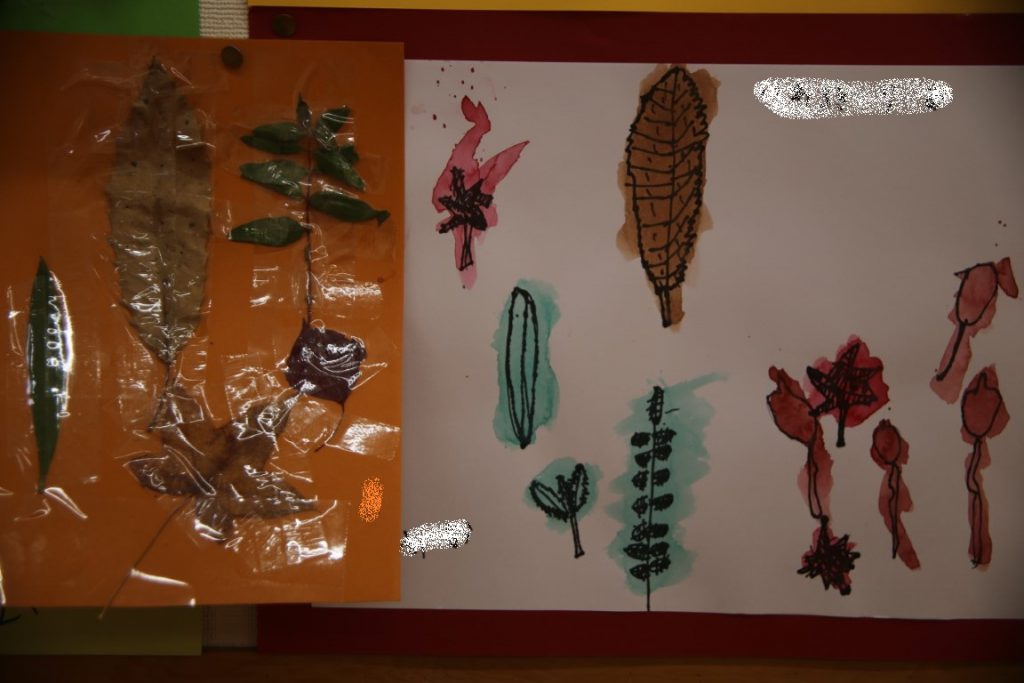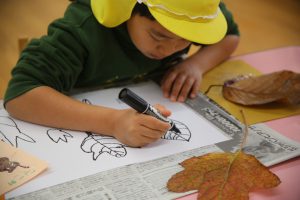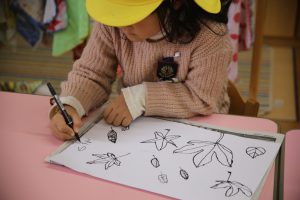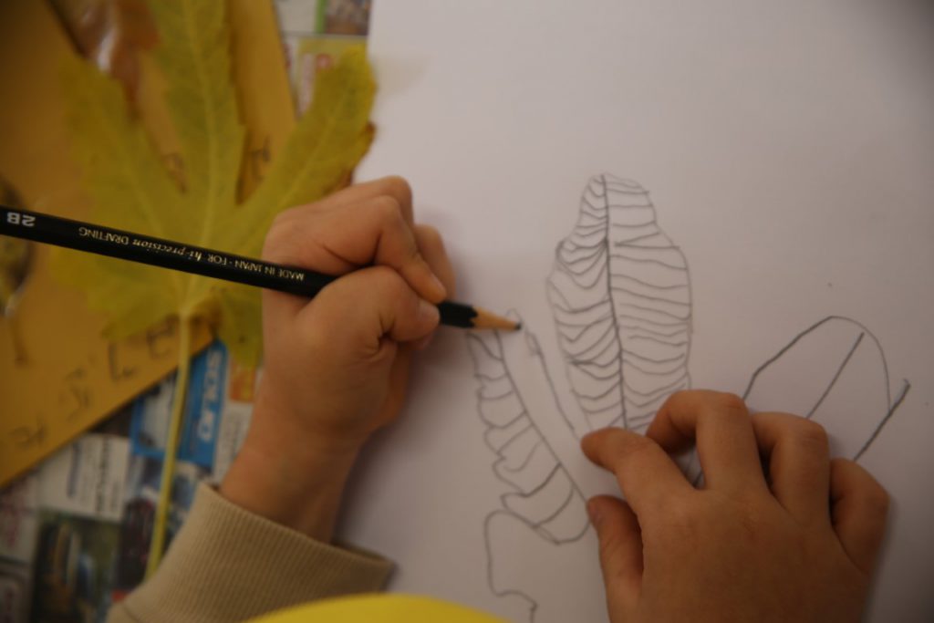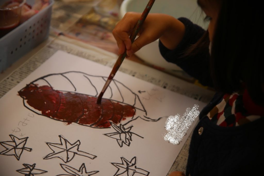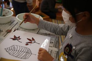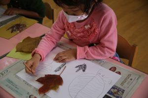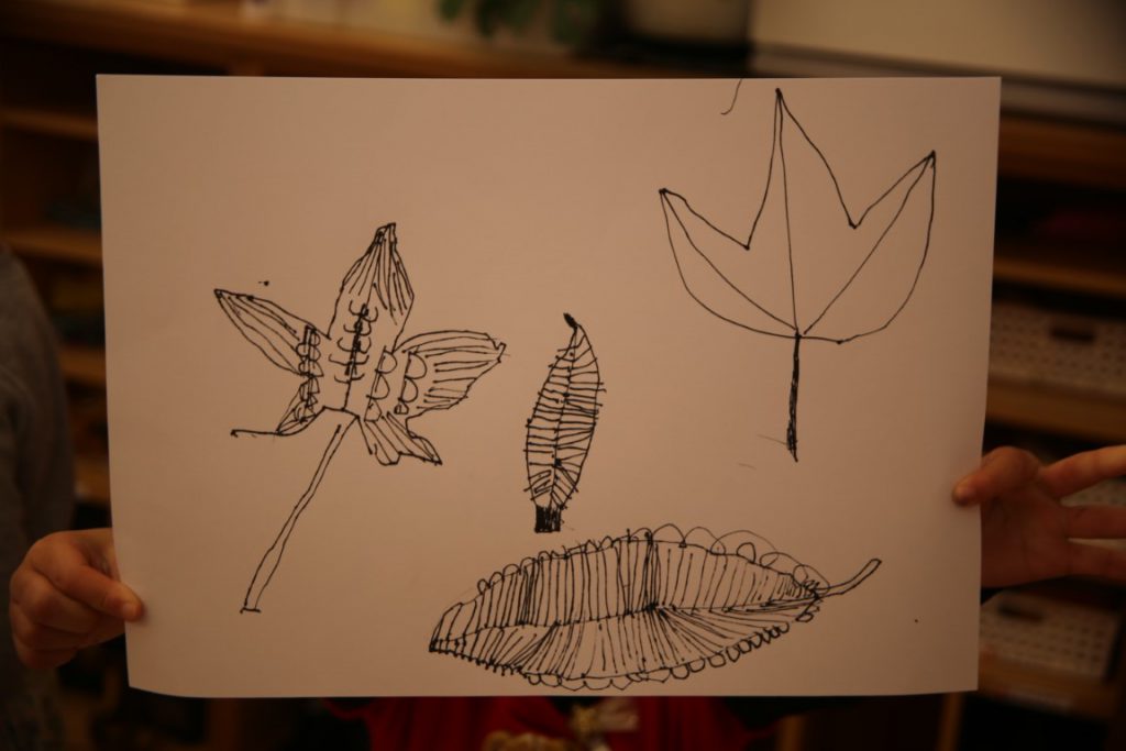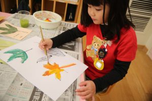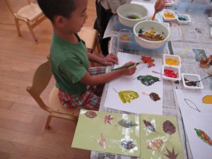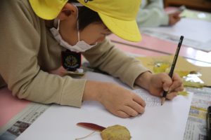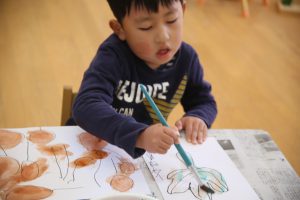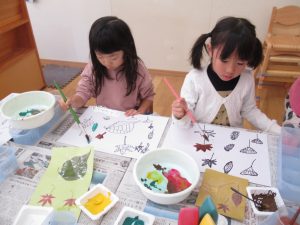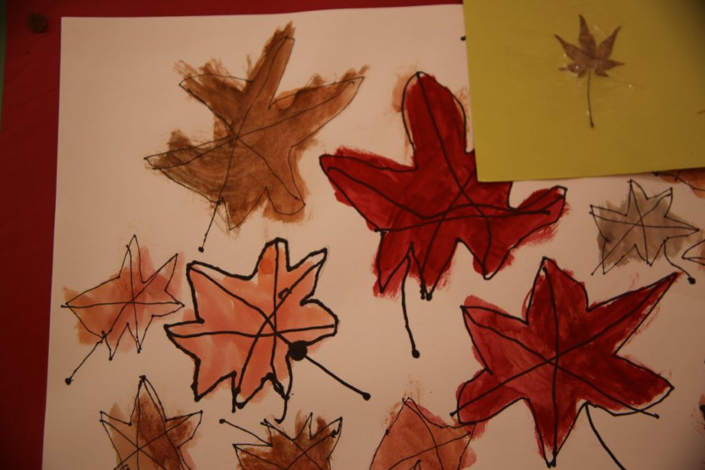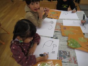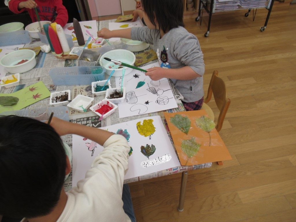 秋の葉っぱ、よく見て描く(年長)