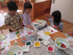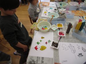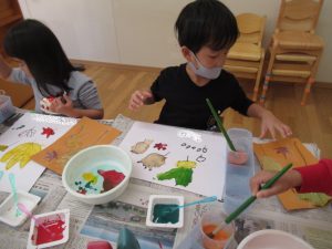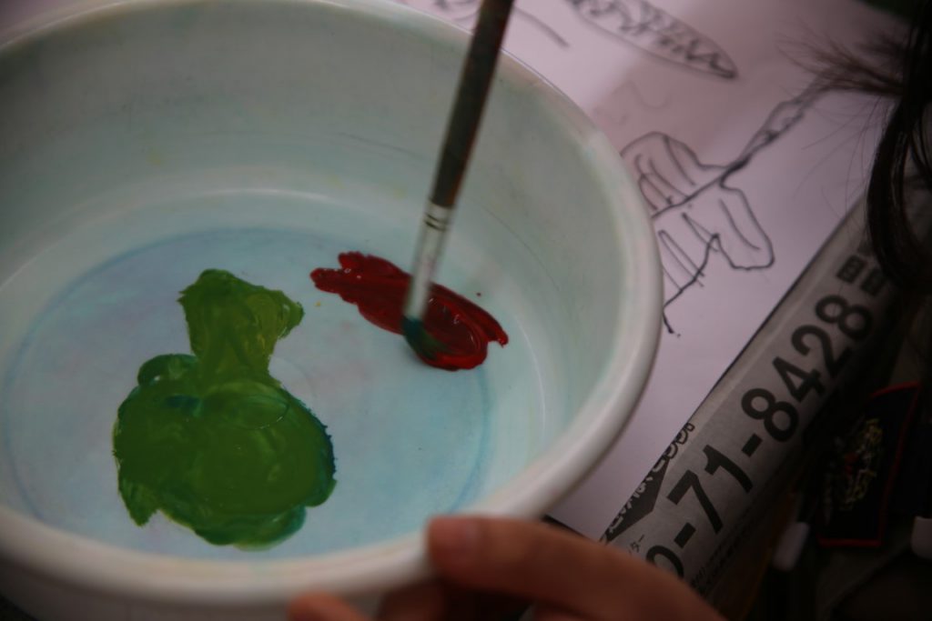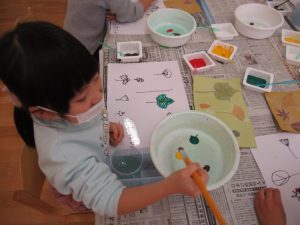 今回は、絵の具の混色にチャレンジ。