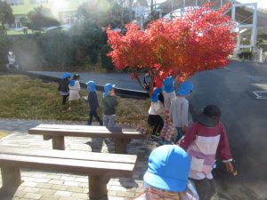 幼稚園の紅葉も広がり、大学構内でも