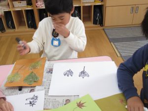 葉の色を見て、このようにつぶやいた子も。