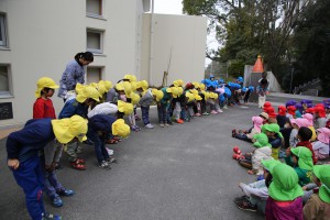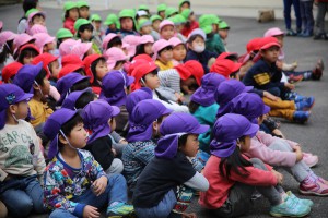 お話を聞く年中児、年少児も、とても静かに言葉に耳を傾けていました。