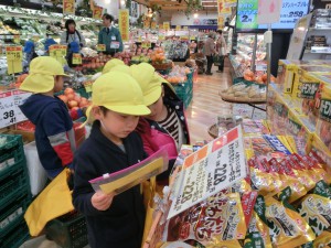 スーパーにつき、買い物メモとお金をもらっていざ店内へ!