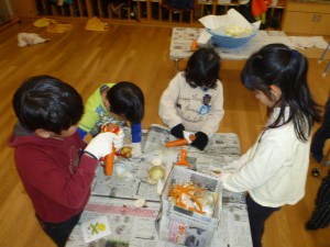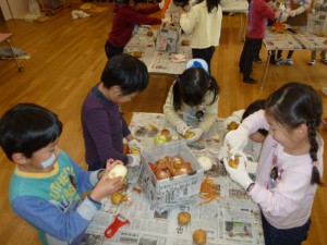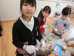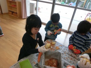 休む暇なんてないない、早速野菜の皮むきだー
