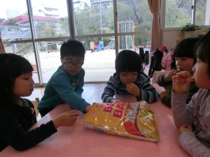 おまちかね、買ってきたお菓子、食べよ!