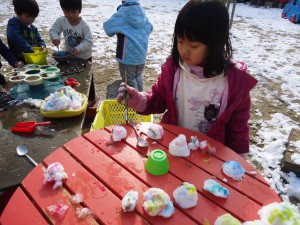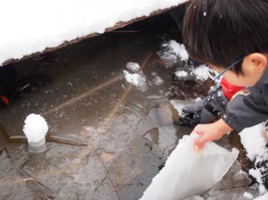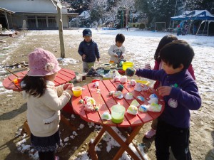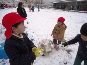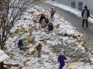 今年初めての、積雪 子どもたちにとっては、待ちに待ったこの雪 園庭のあちらこちらで、思い思いに、雪を楽しみました。