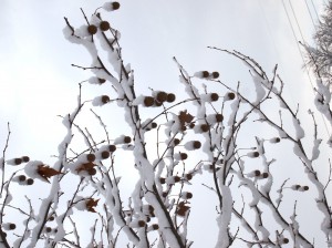 「すずかけの実」 にも こんなにきれいに積もっていました。