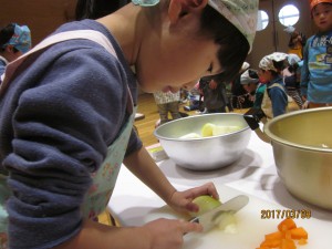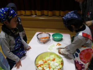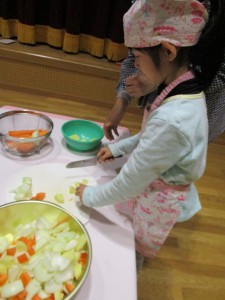 野菜切りの様子を、見に来ました。