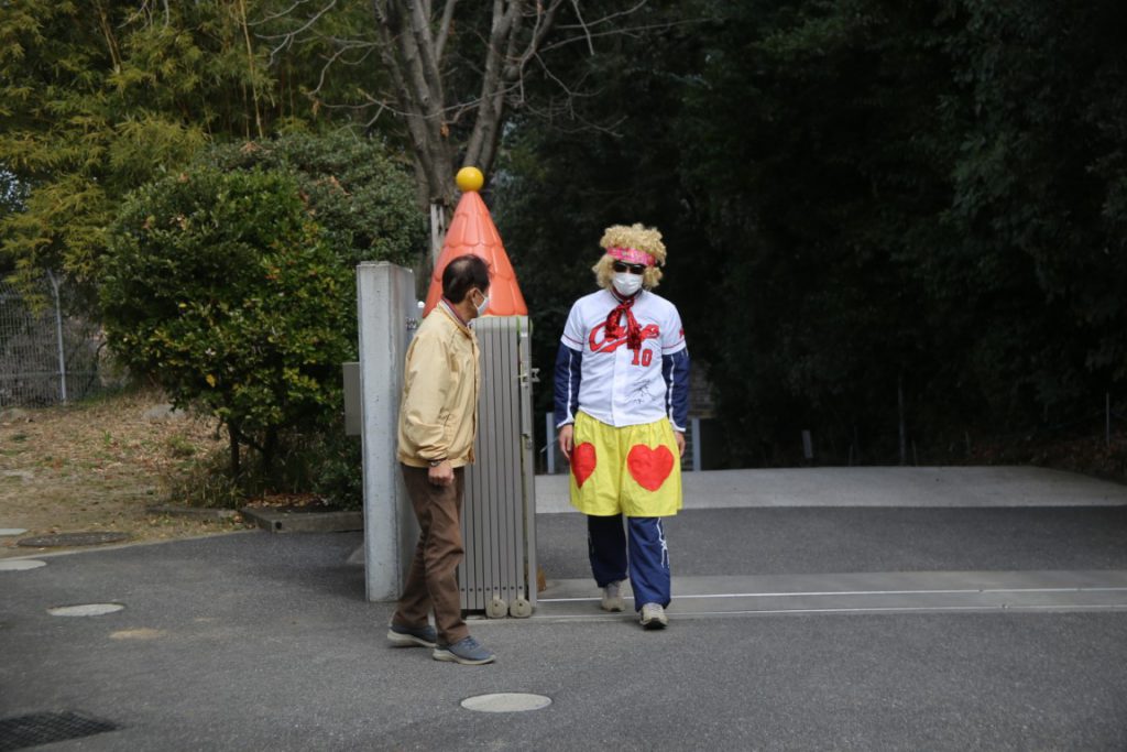 現業員さんのことも押しのけ、園庭に侵入。