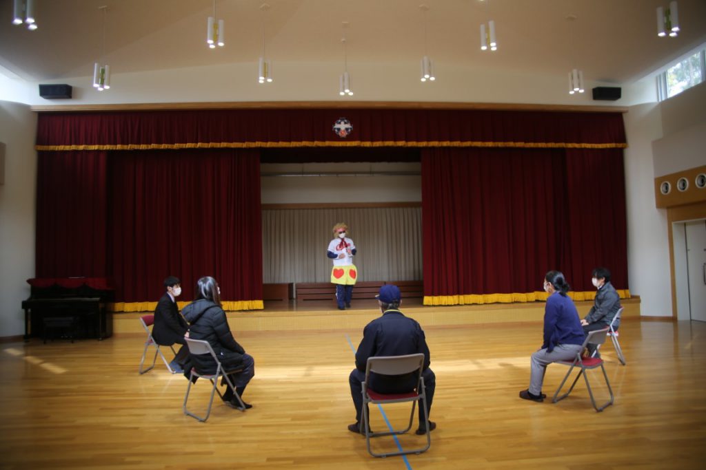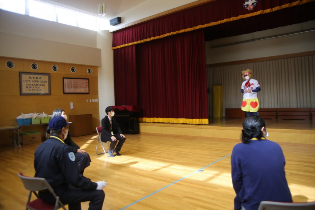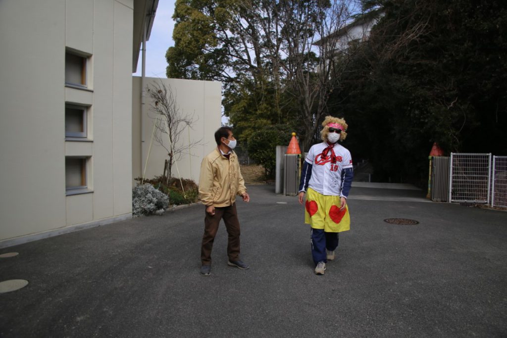 園長が、園内放送で子どもと職員に、