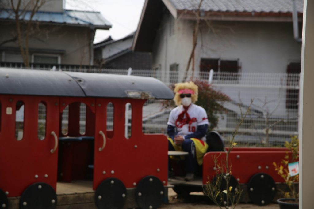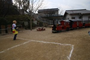 園庭の汽車に、不審者、潜伏