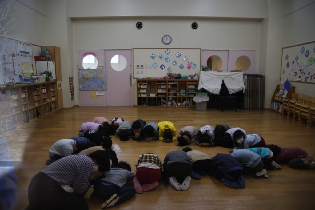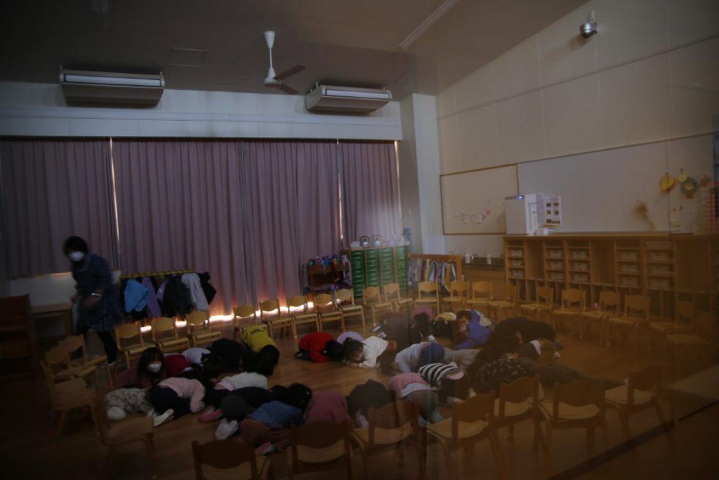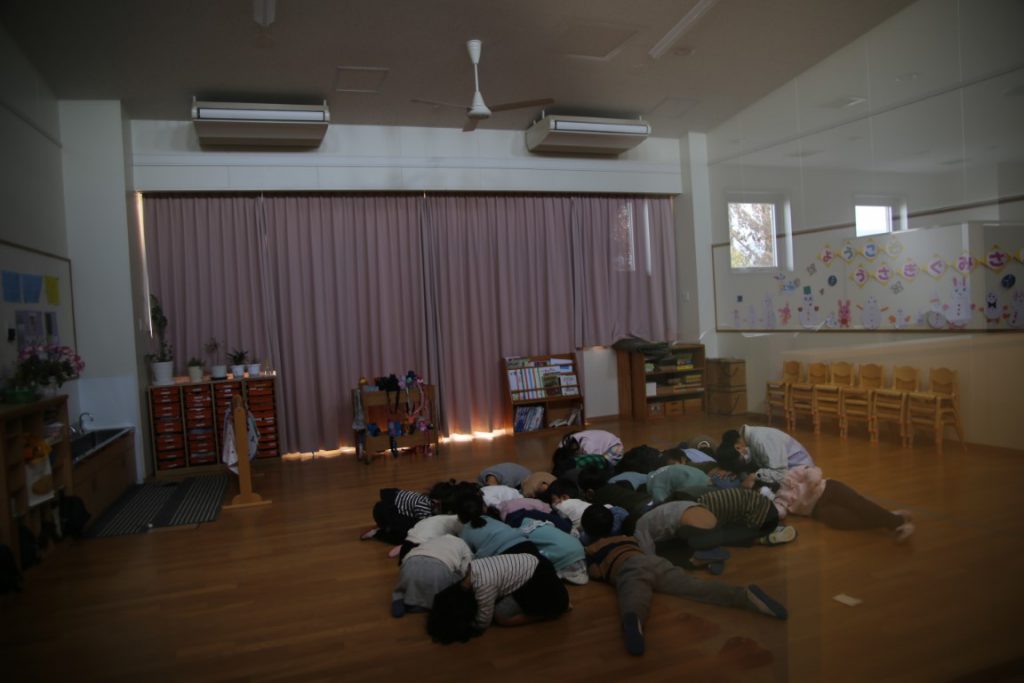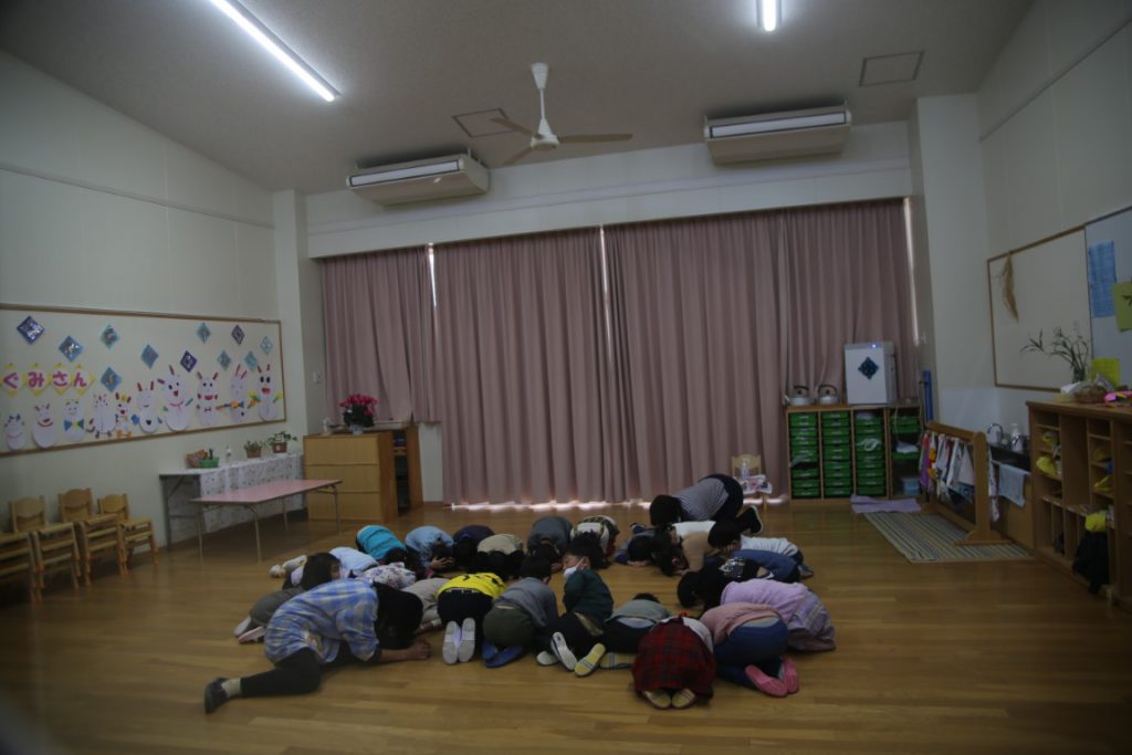 幼稚園では、年間計画で避難訓練を行っています。
