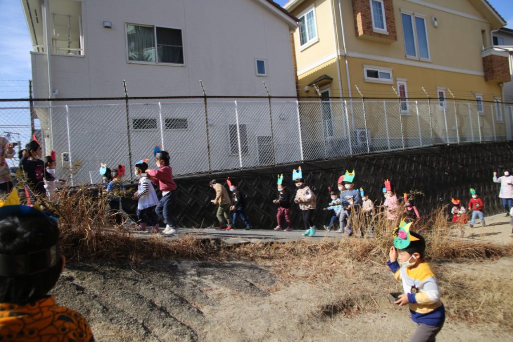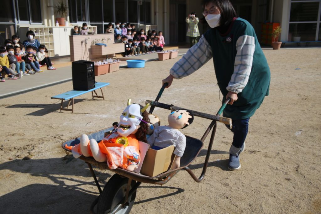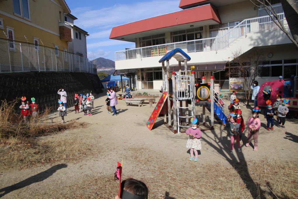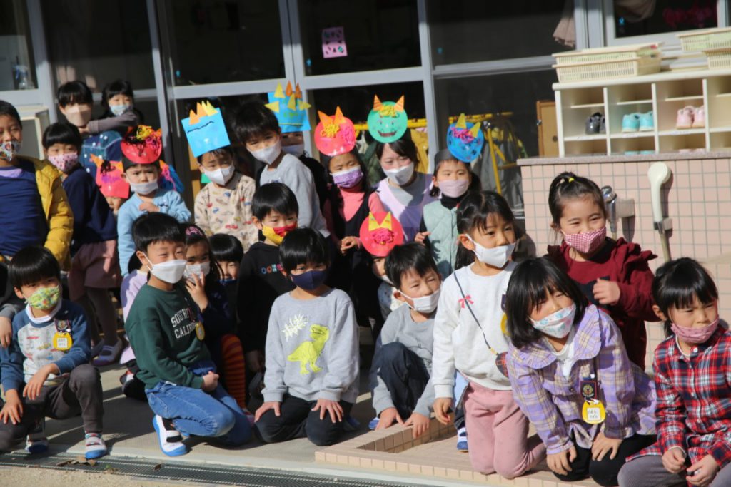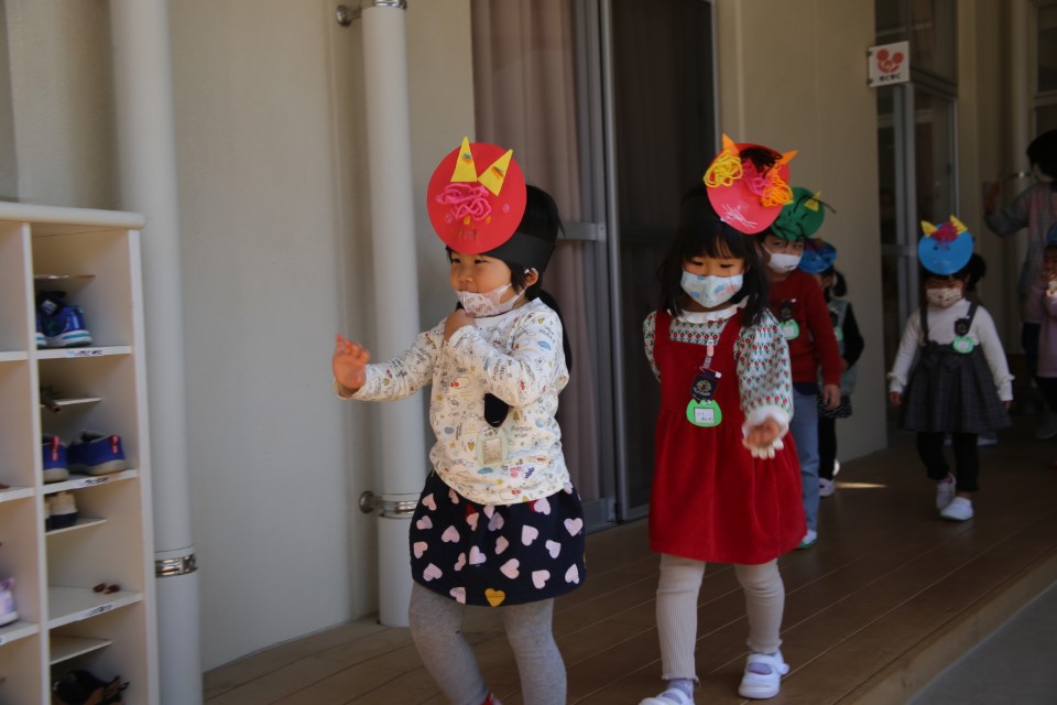 幼稚園で、どうにか節分会を実施できて、