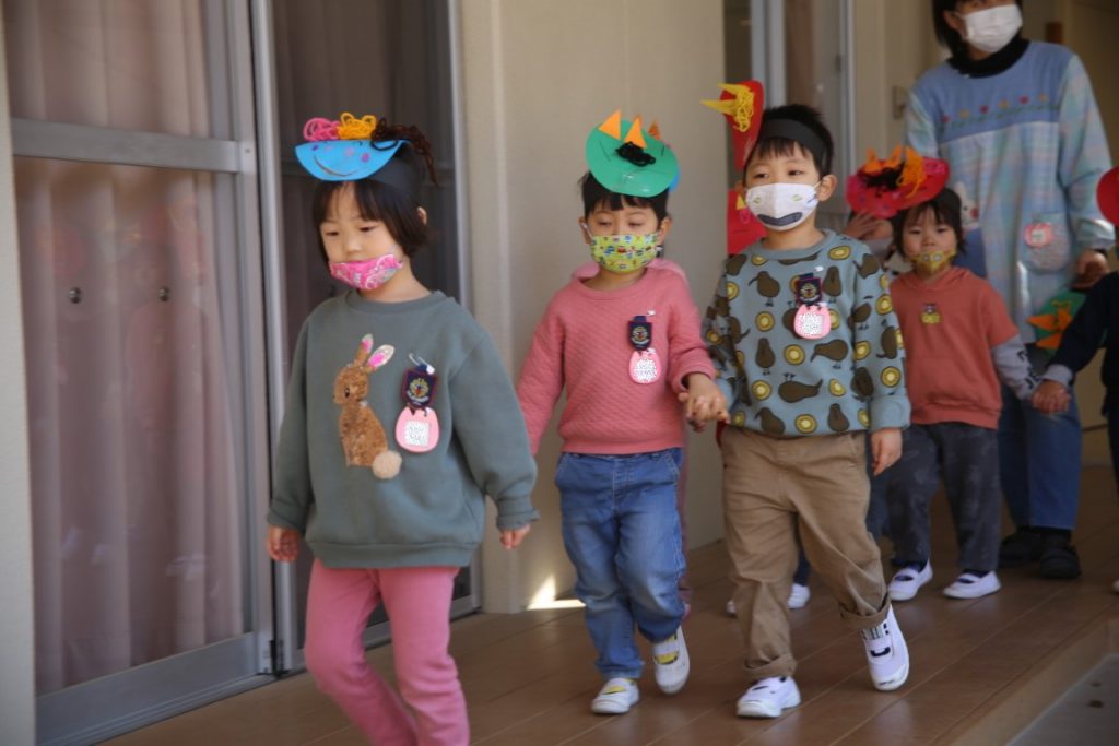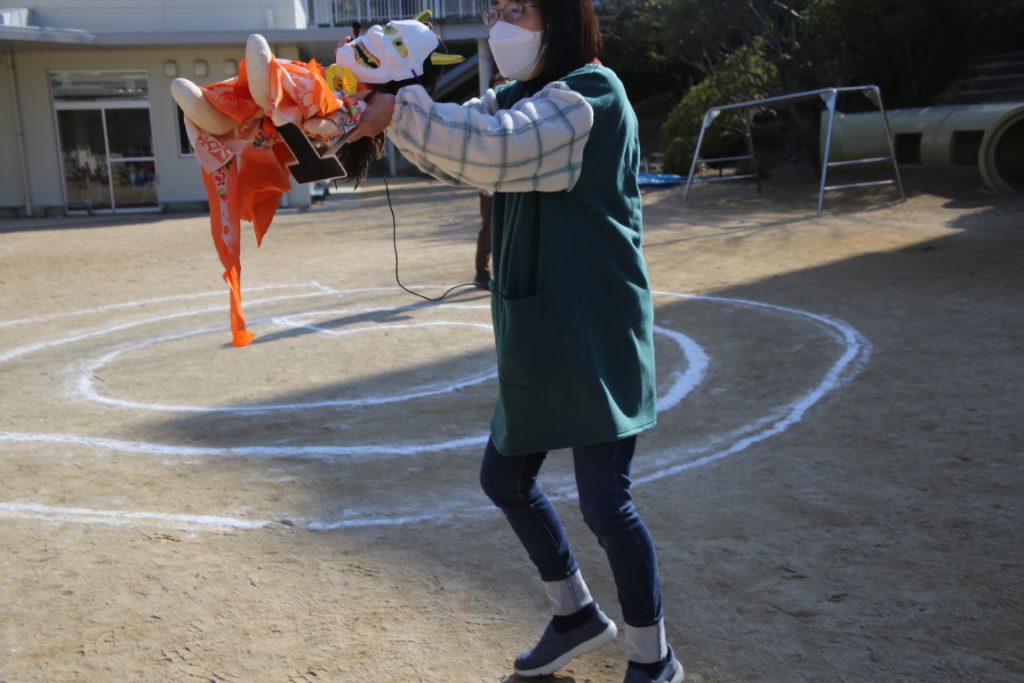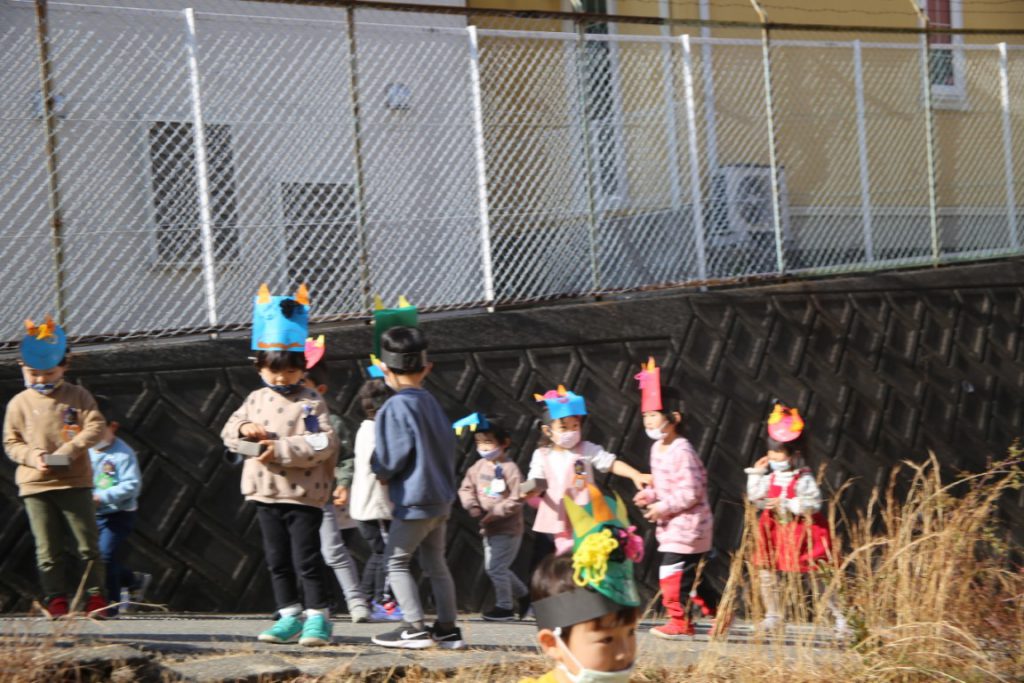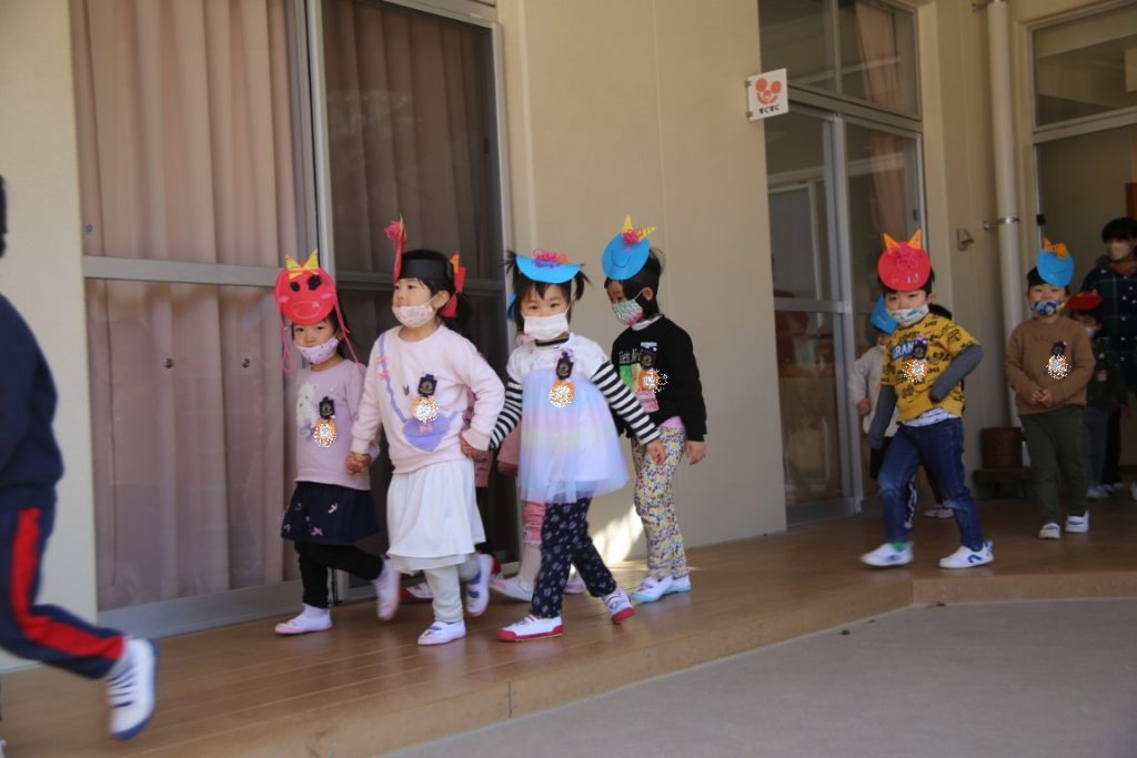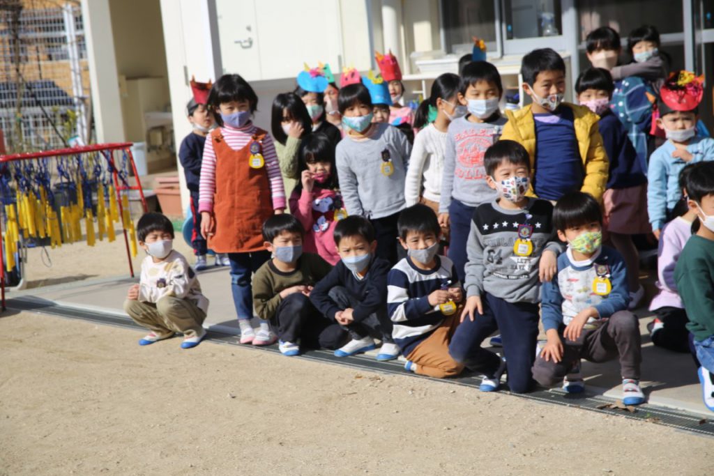 幼稚園で、どうにか節分会を実施できて、