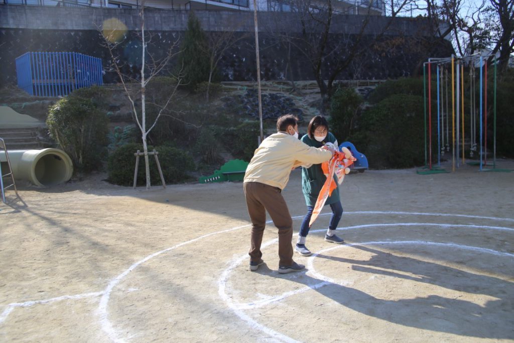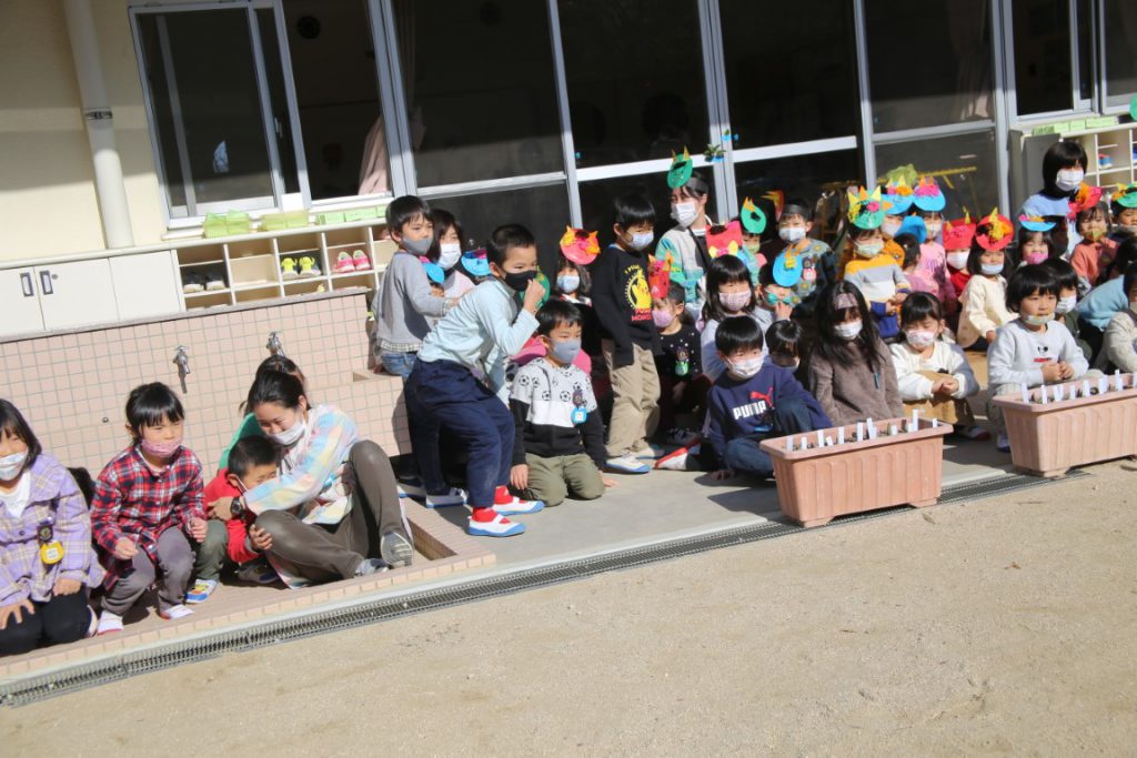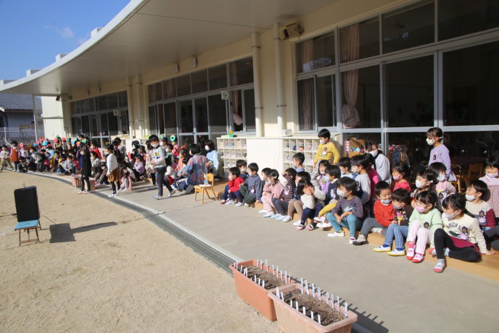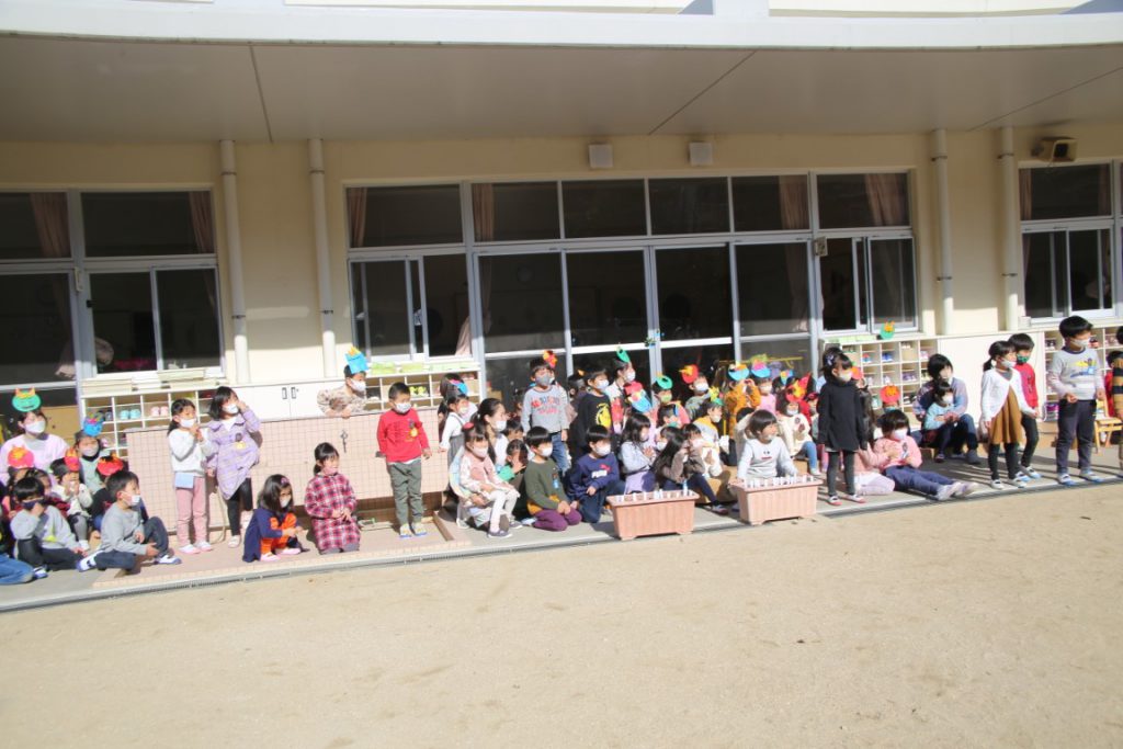 北園庭のテラスでの節分会としました。???