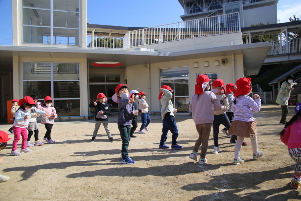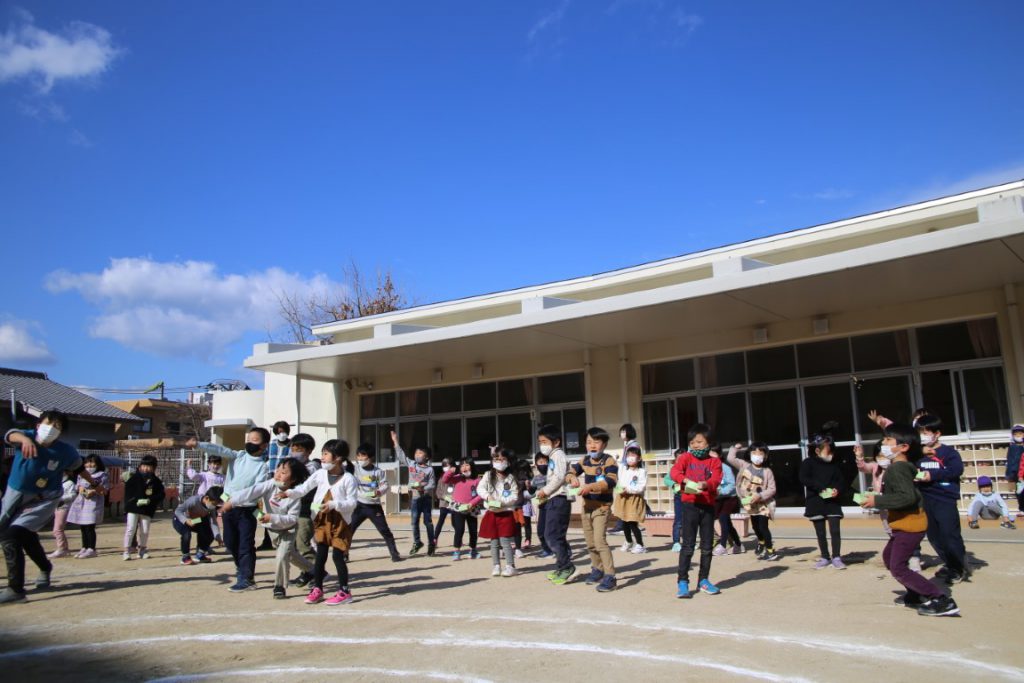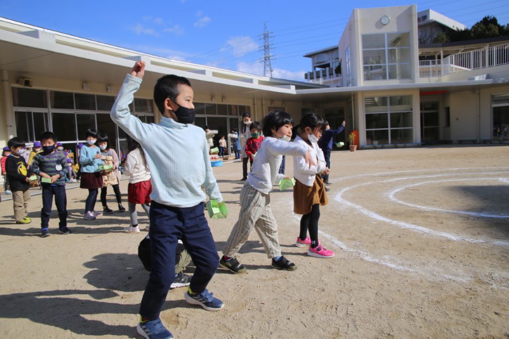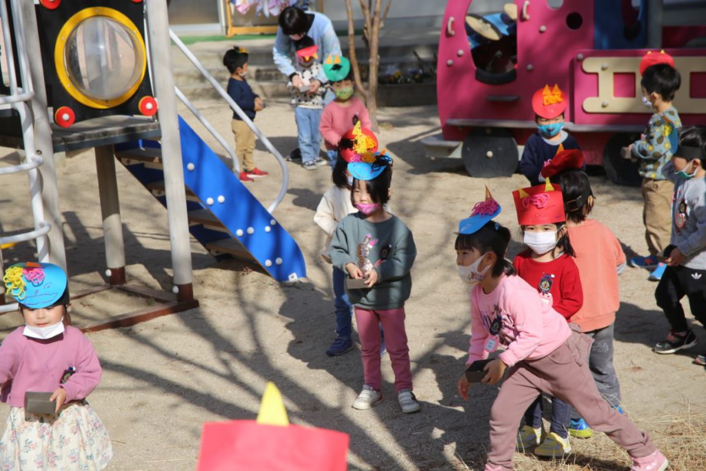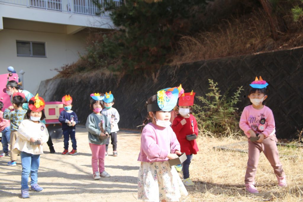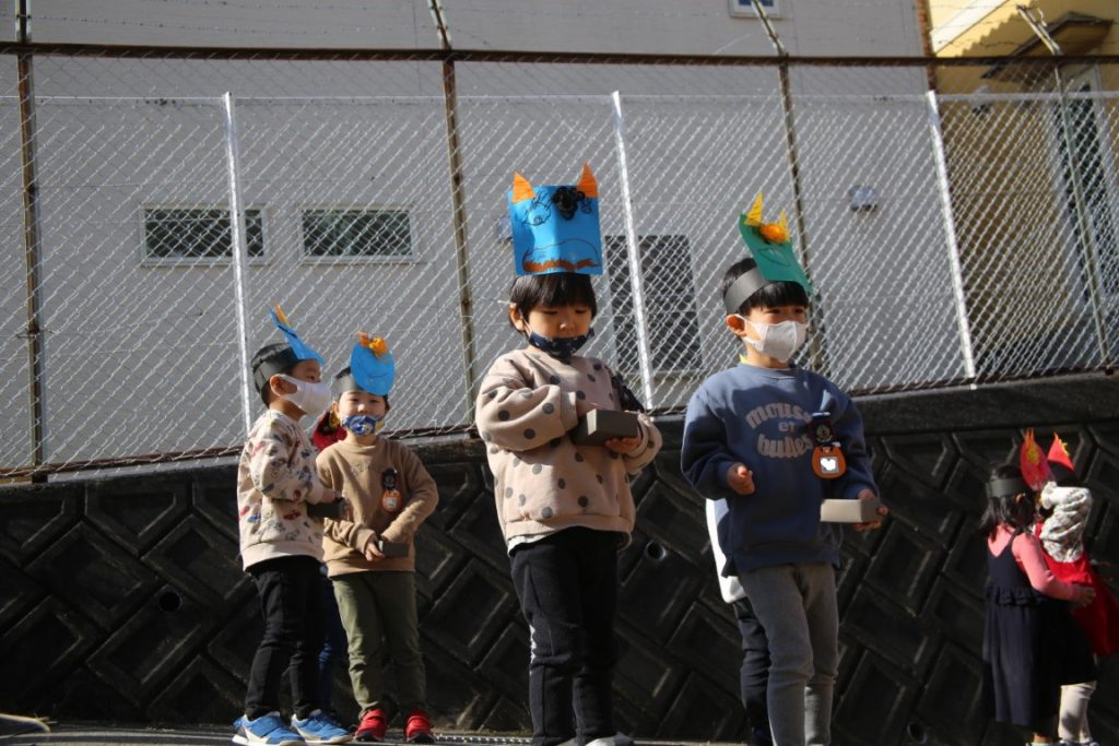 年少さんは、幼稚園で初めての豆まき