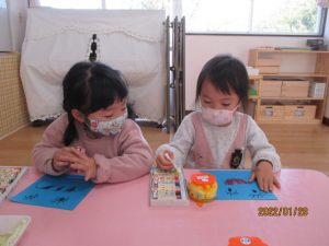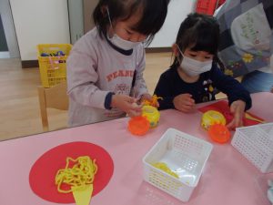なりきって遊ぶことも楽しんでいる年少さんです。