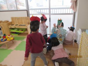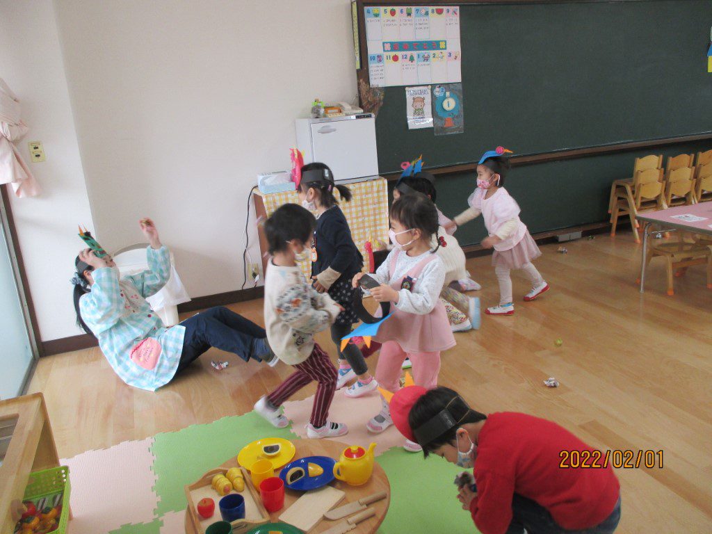 あ、緑鬼だ~~~!!「鬼は、外~~~」