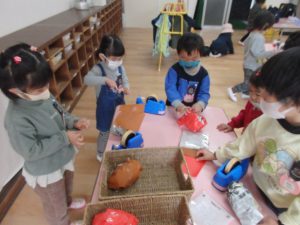 劇遊びに必要なものづくりが始まりました。