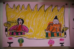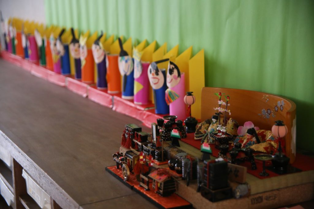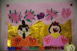 幼稚園でも、ホールにおひなさまをお迎えし、