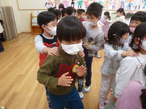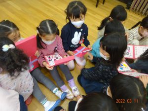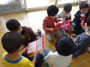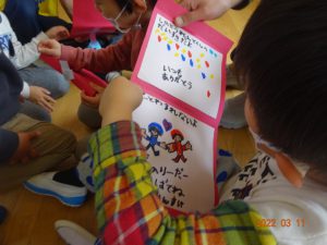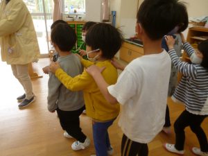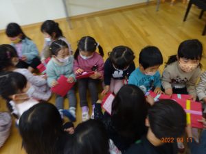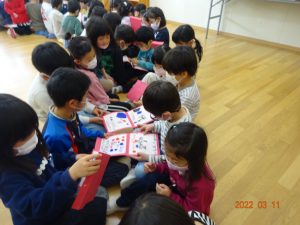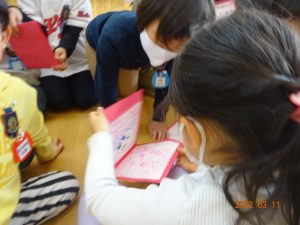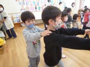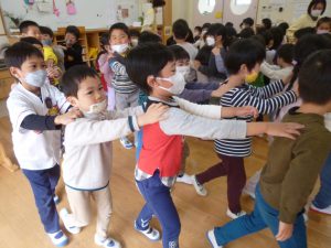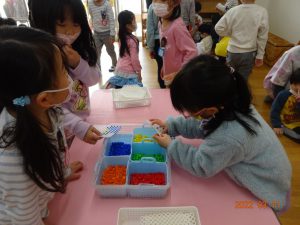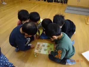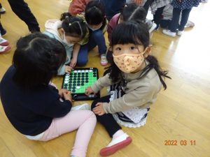 年中さんが、年長児のクラスで遊ばせてもらいました。