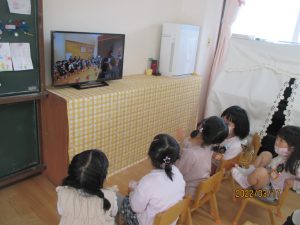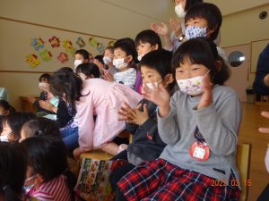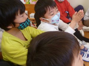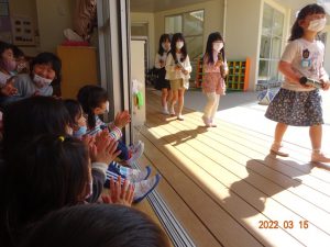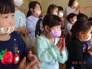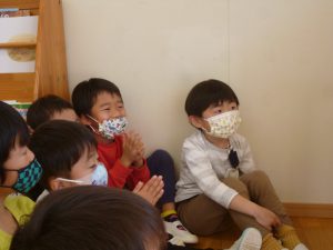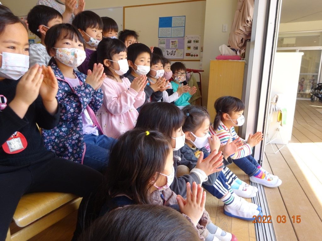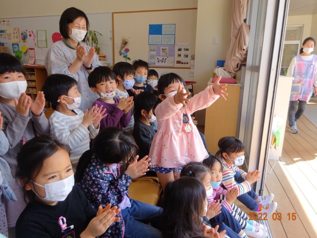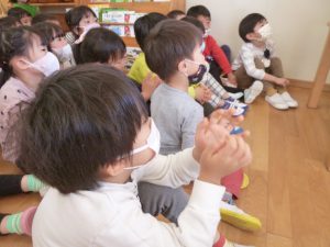 年長児は、思いがけない拍手やお祝いの言葉に、