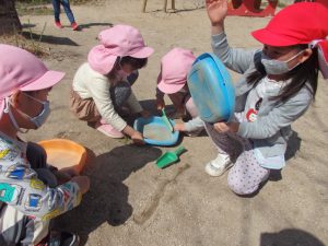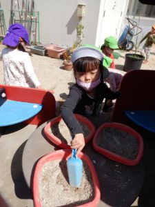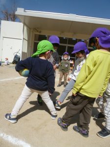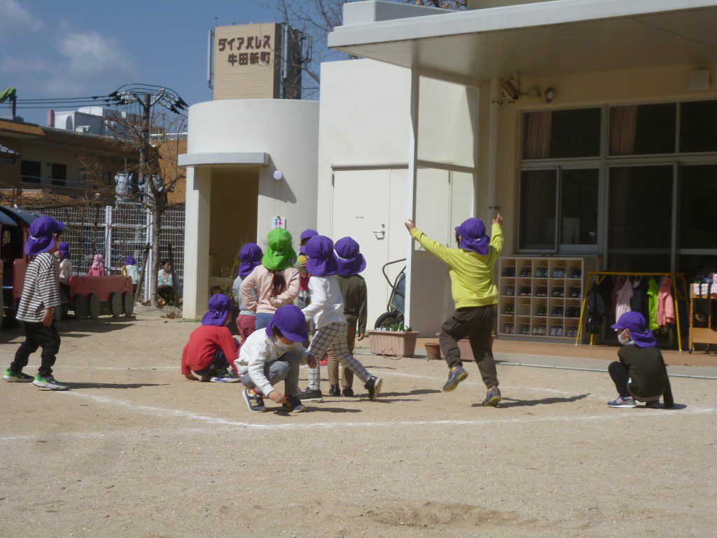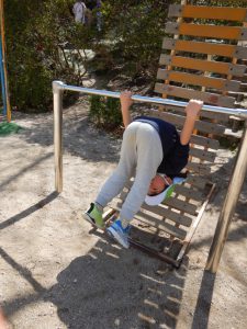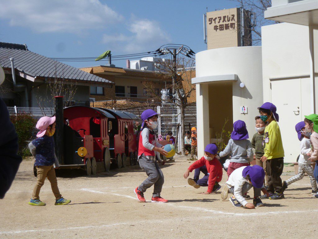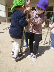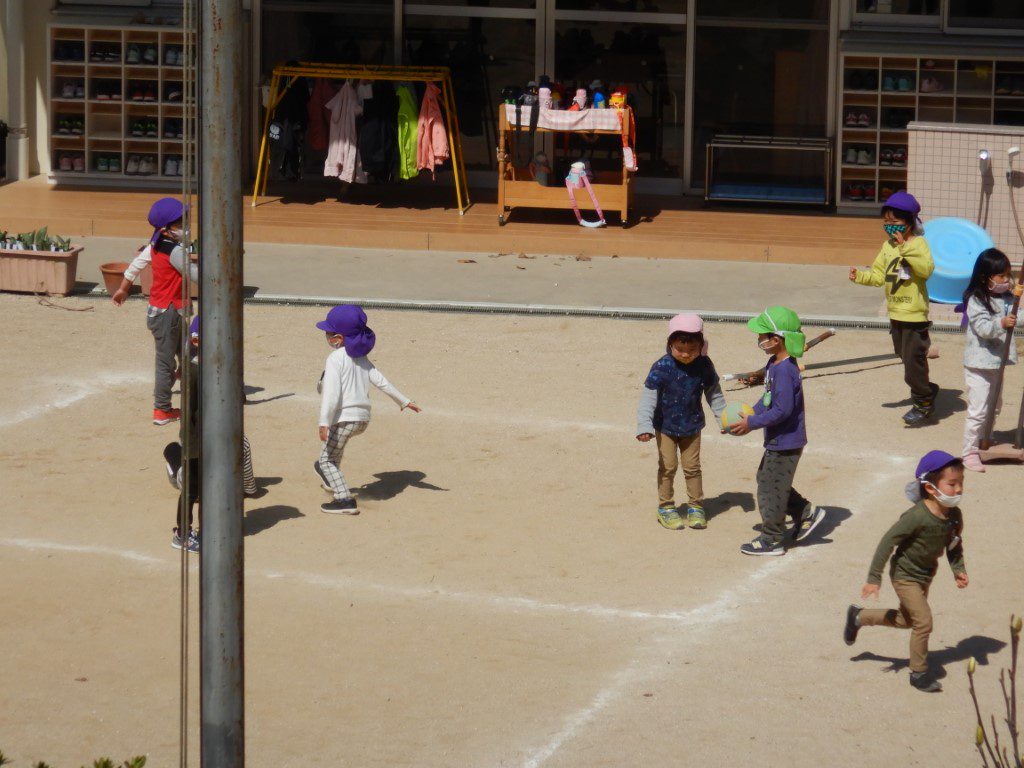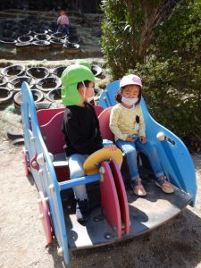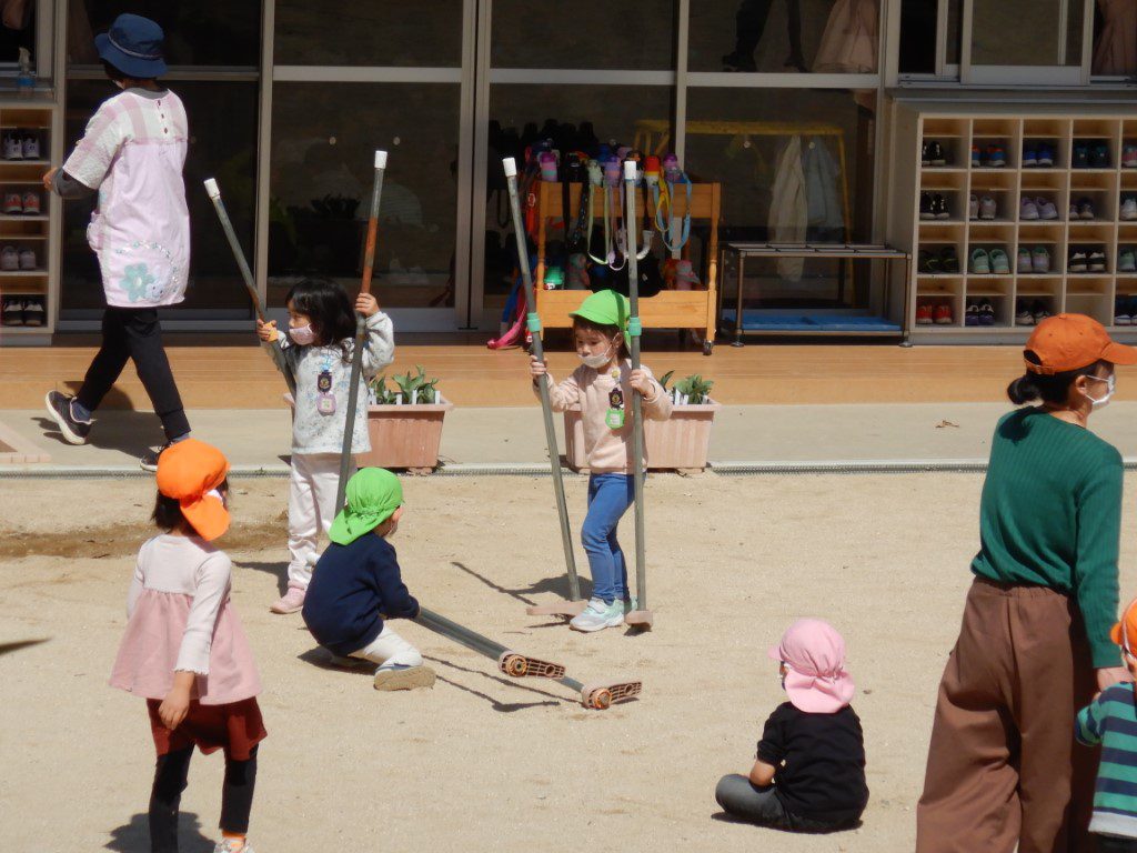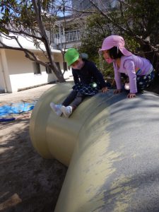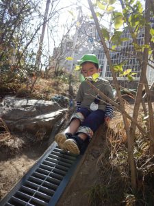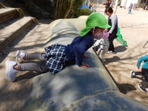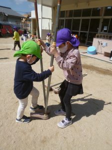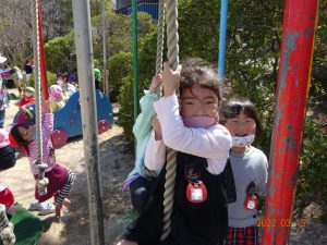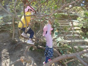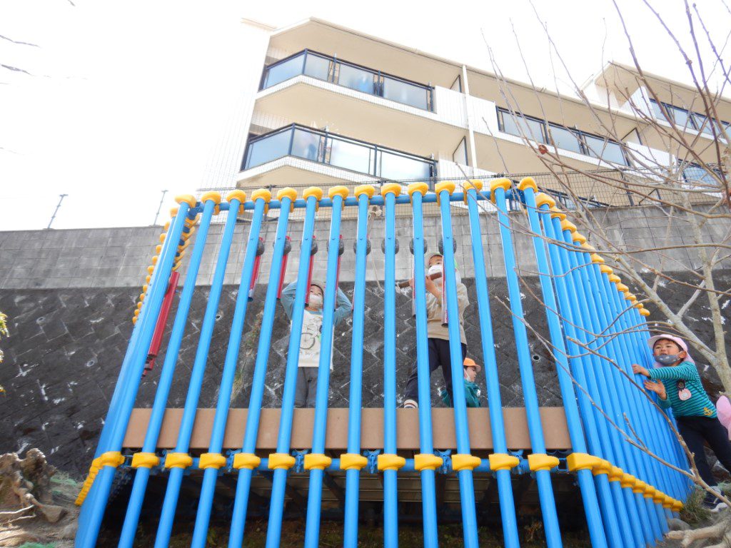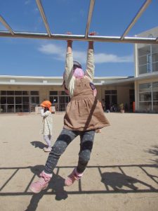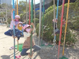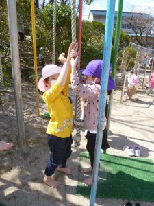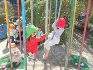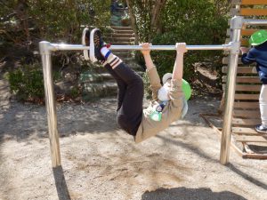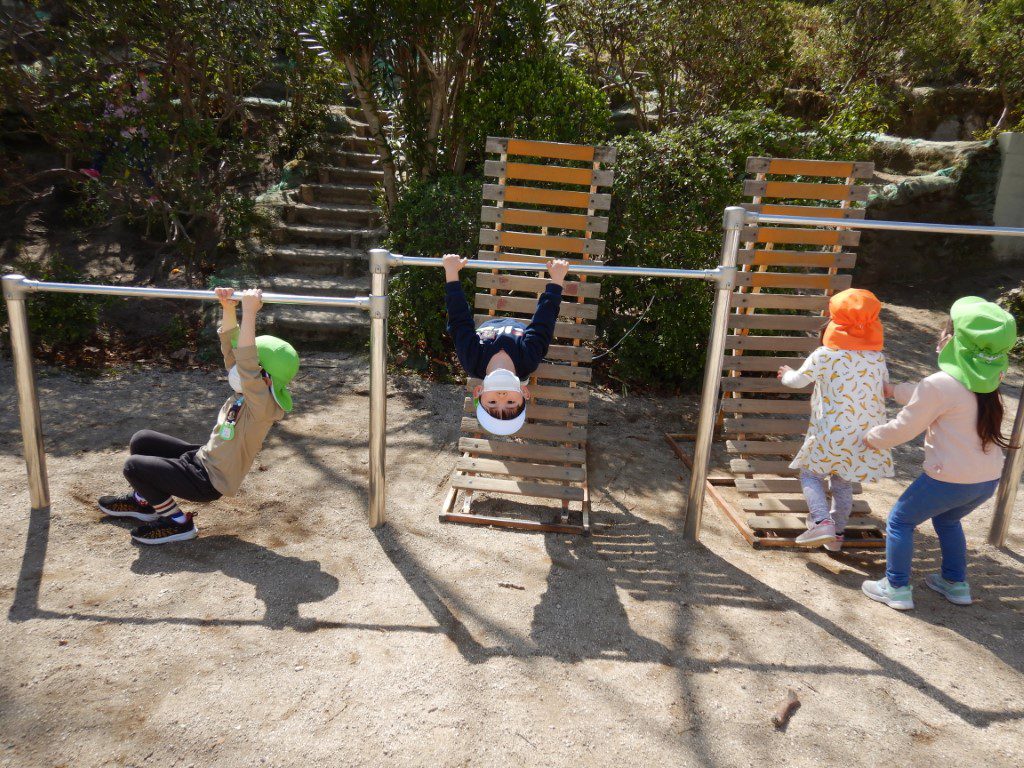北園庭にはない雲梯や、登り棒、鉄棒などの
