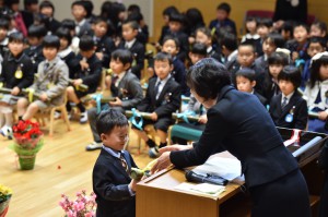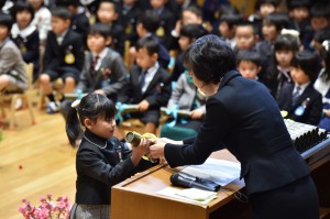 大切な終了証書を「ありがとうございます」と言って受け取りました。