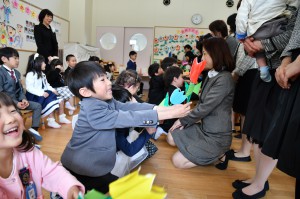 おうちの方の体いっぱいに込められたおめでとうを感じた子どもたち 「むぎゅー?」