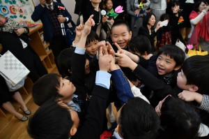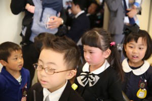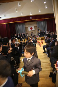 卒園式には参加しなかった年少さんは、拍手の花道を作ってお見送りです。