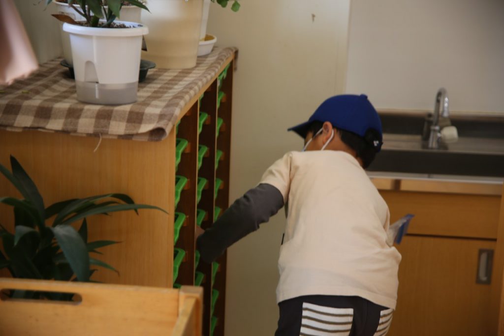 明るい笑顔で、登園してきてくれました。
