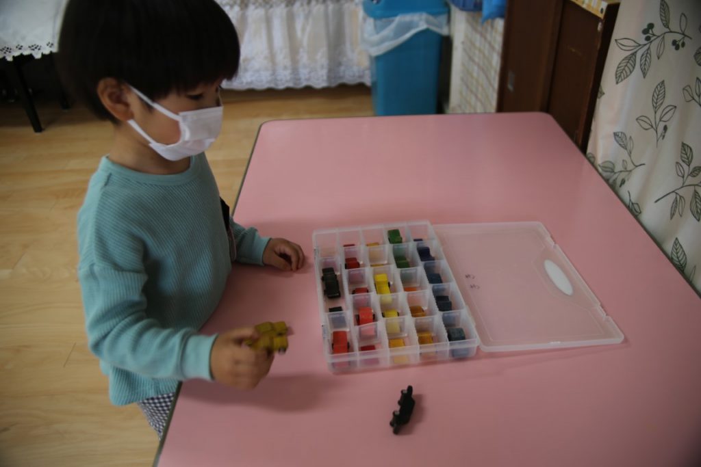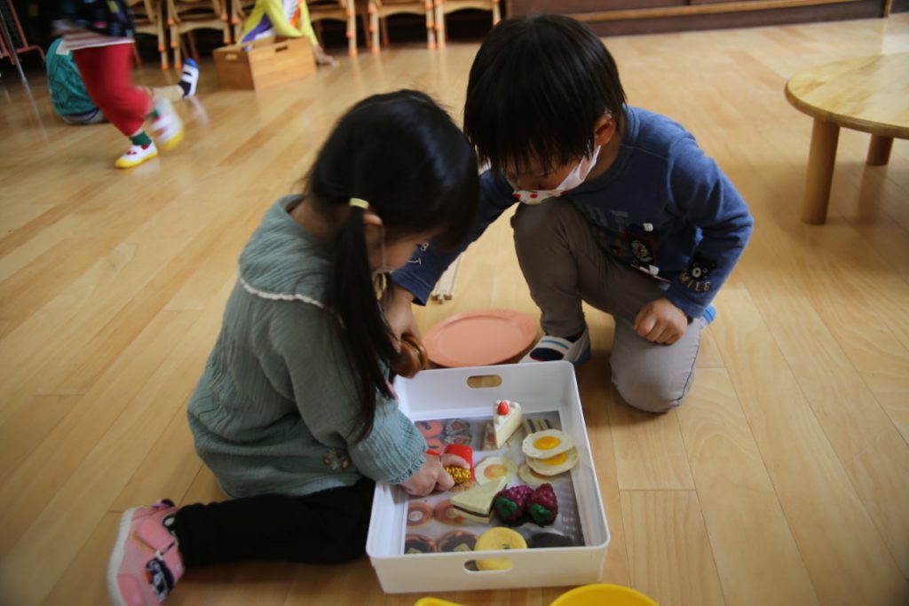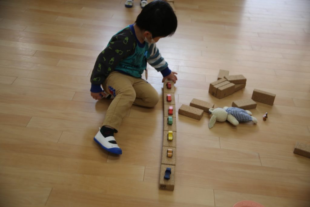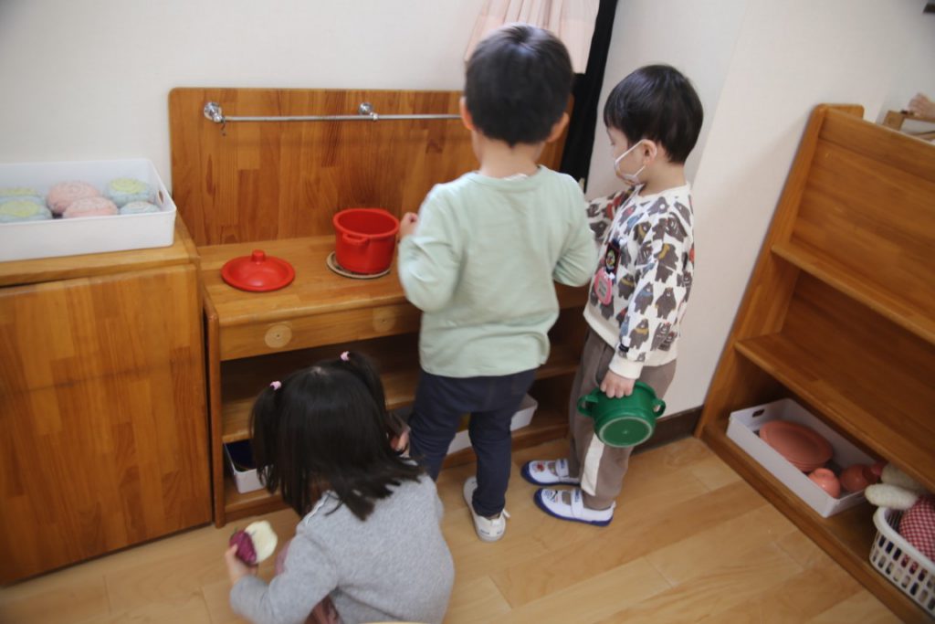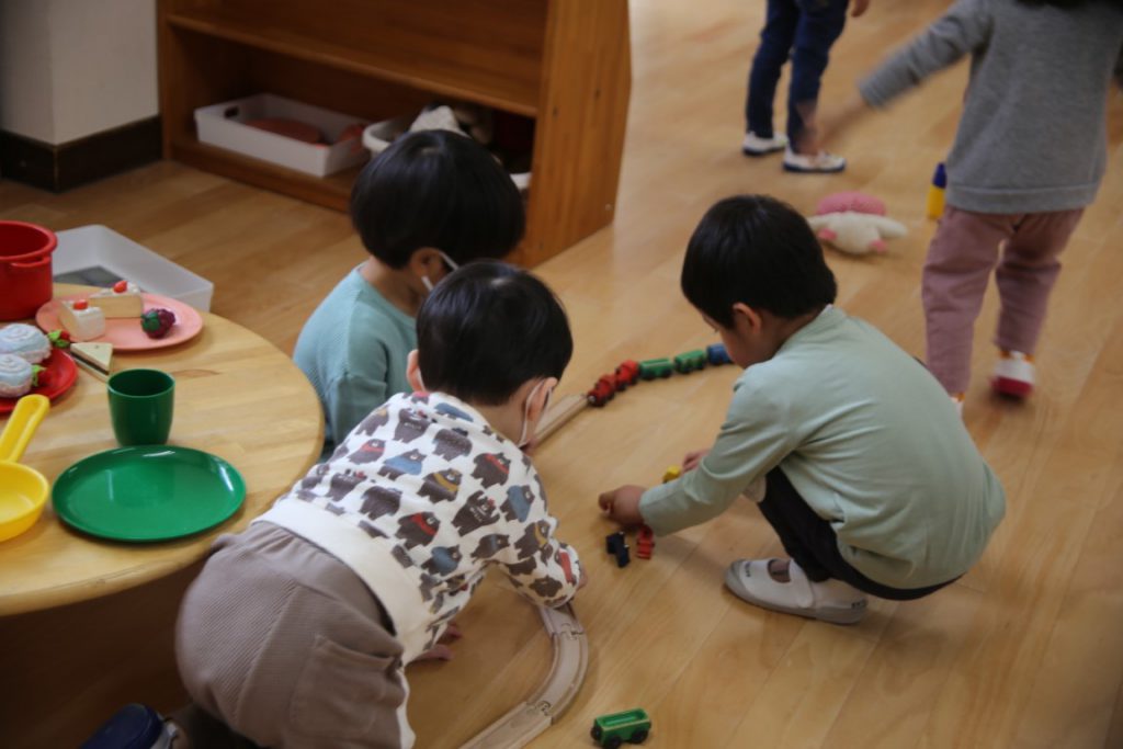 幼稚園についたら、自分の好きな場を見つけて…