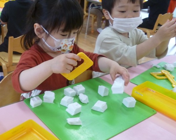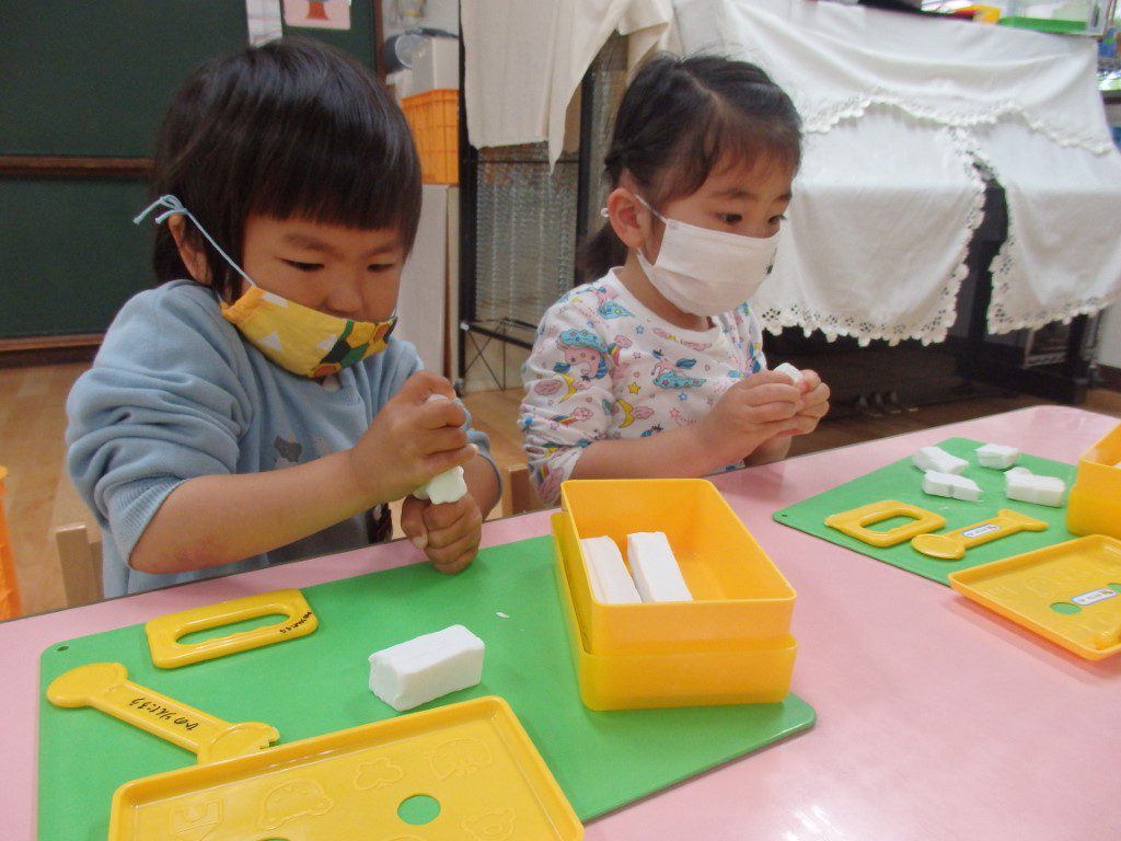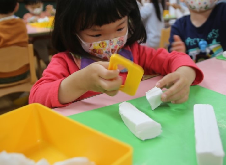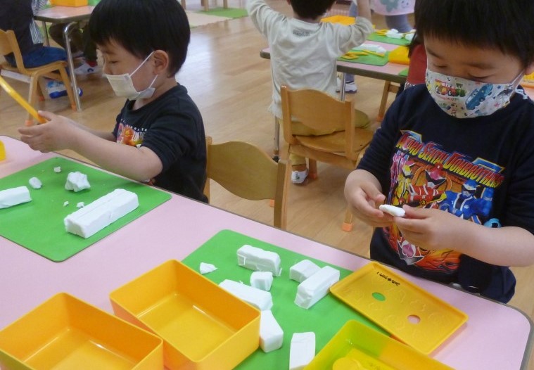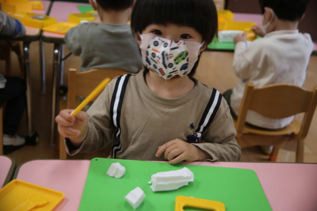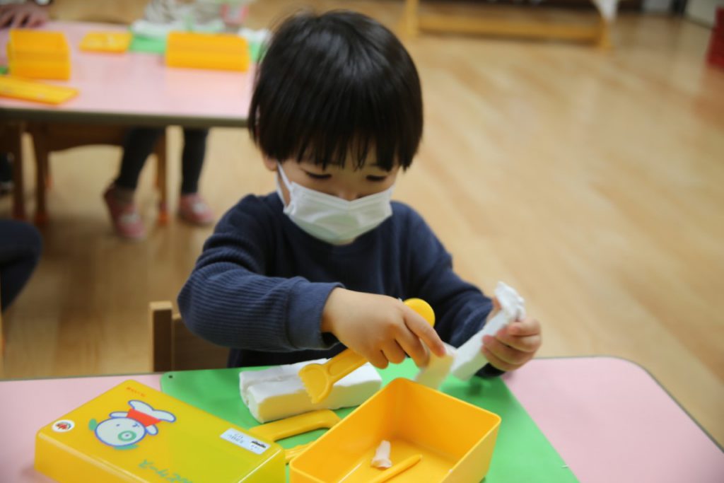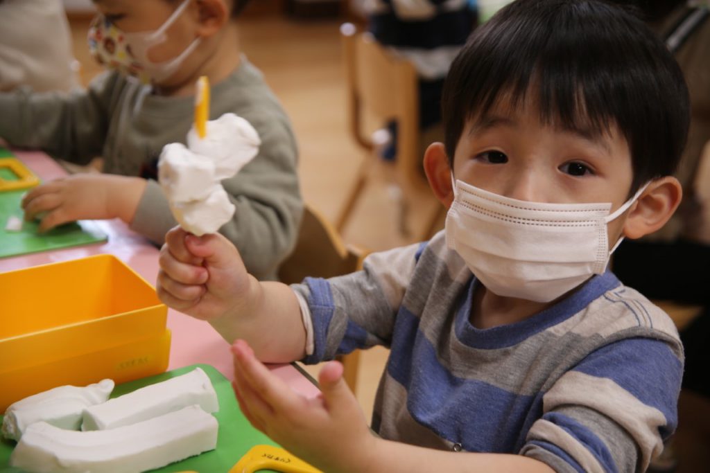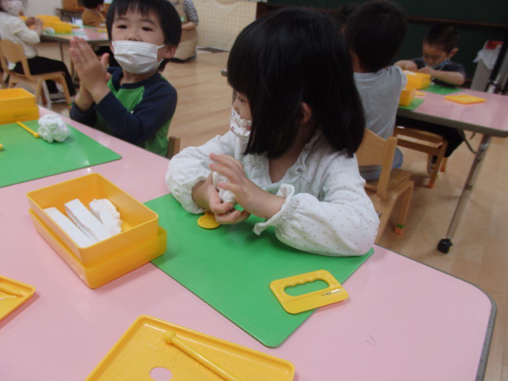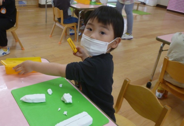 クラスのお友達と一緒に、粘土遊びをしました。