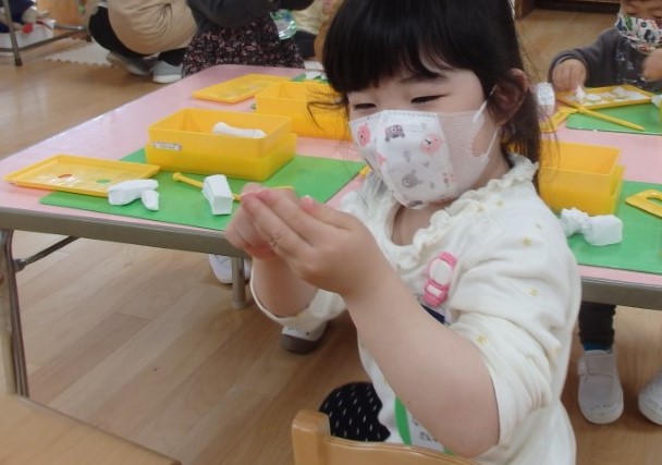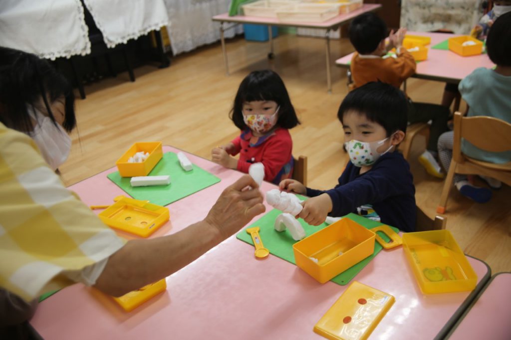 年少さん、幼稚園での初めての粘土遊びには、