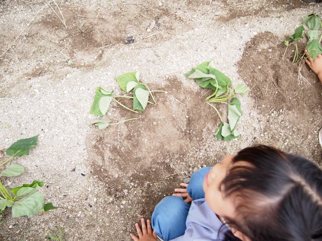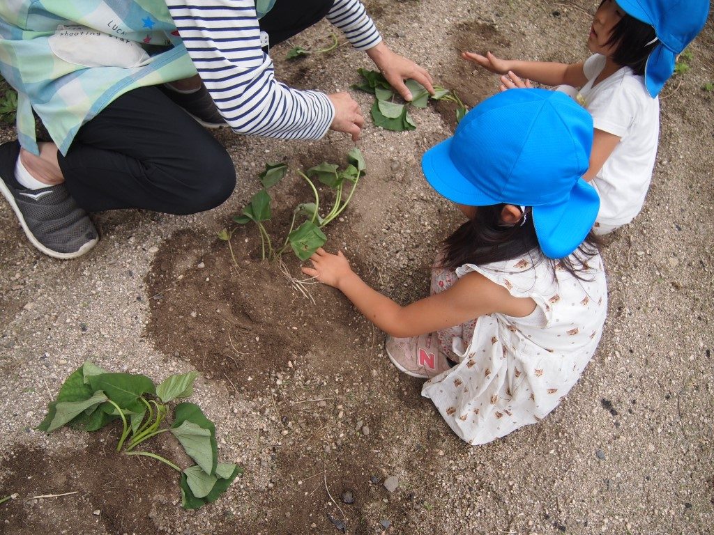 「年中さんのさつまいもの苗も植えてあげるからね♡」