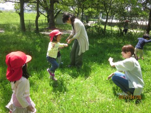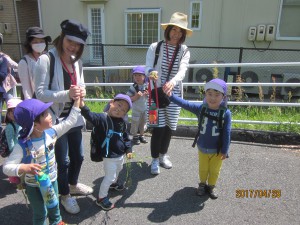 好天の中、親子の嬉しそうな笑顔がはじけます。