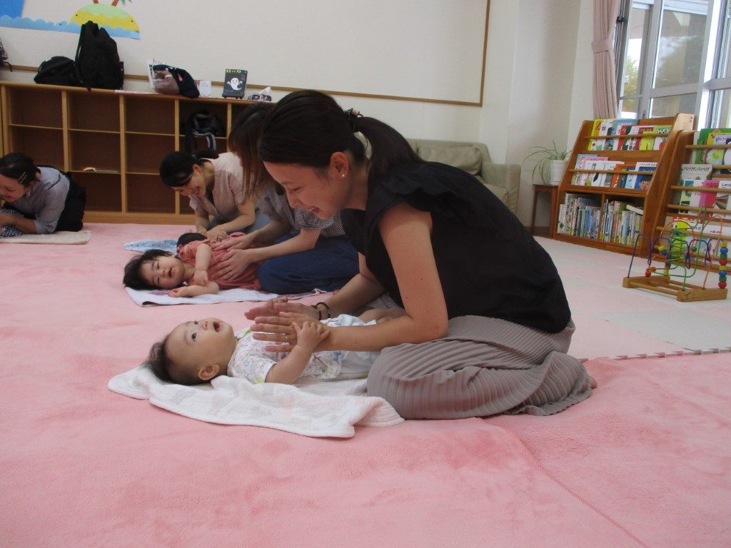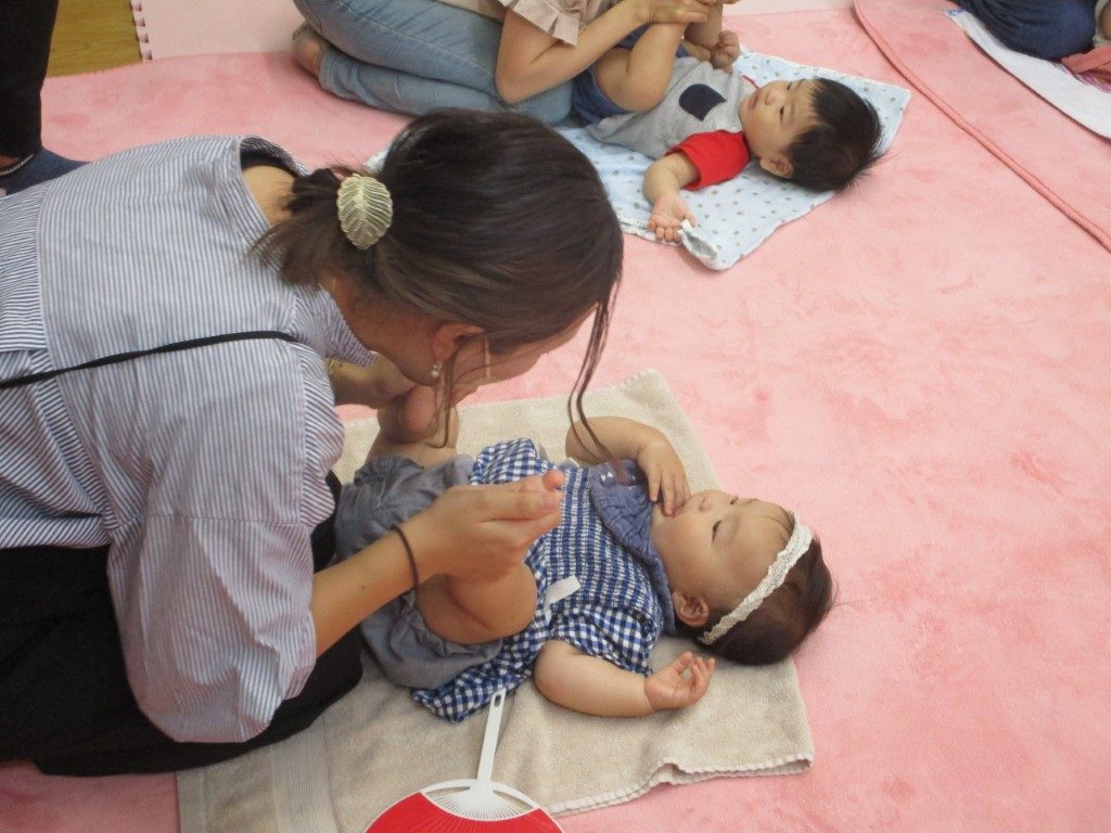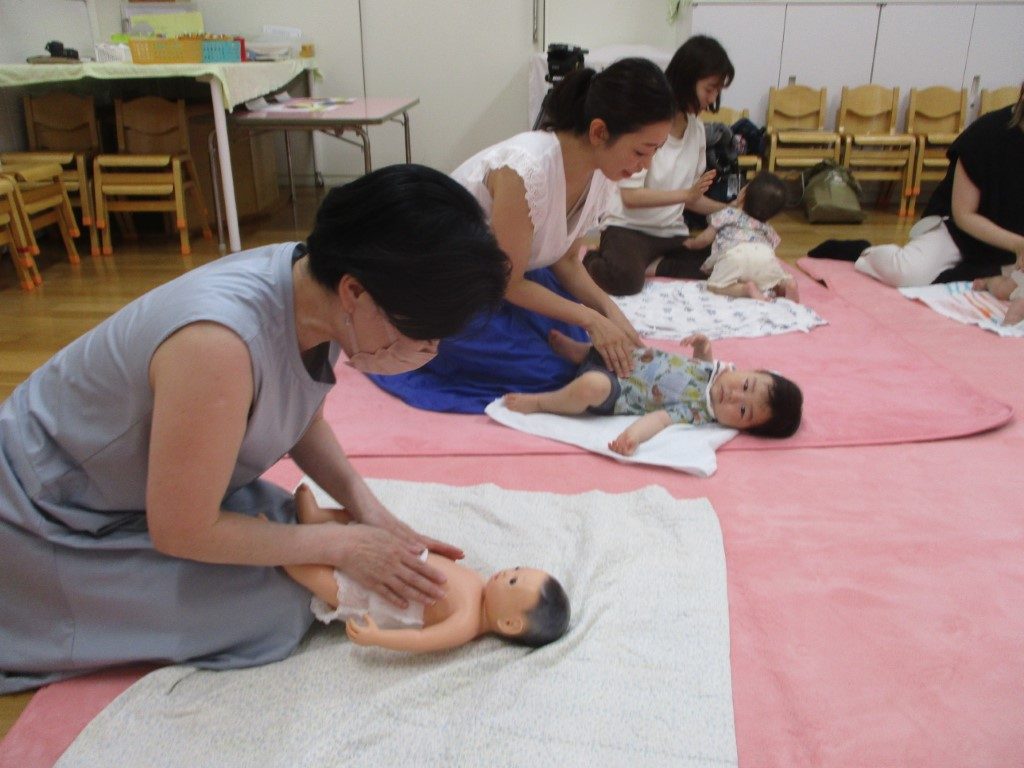 七木田先生が毎回、赤ちゃんのお人形で実演。