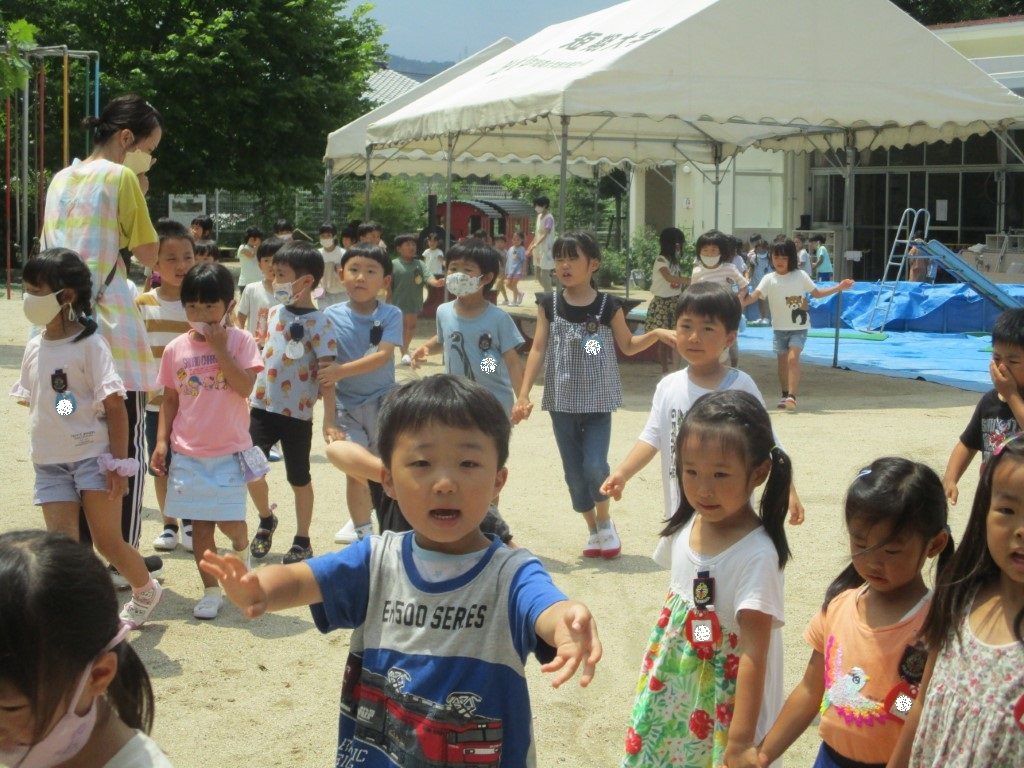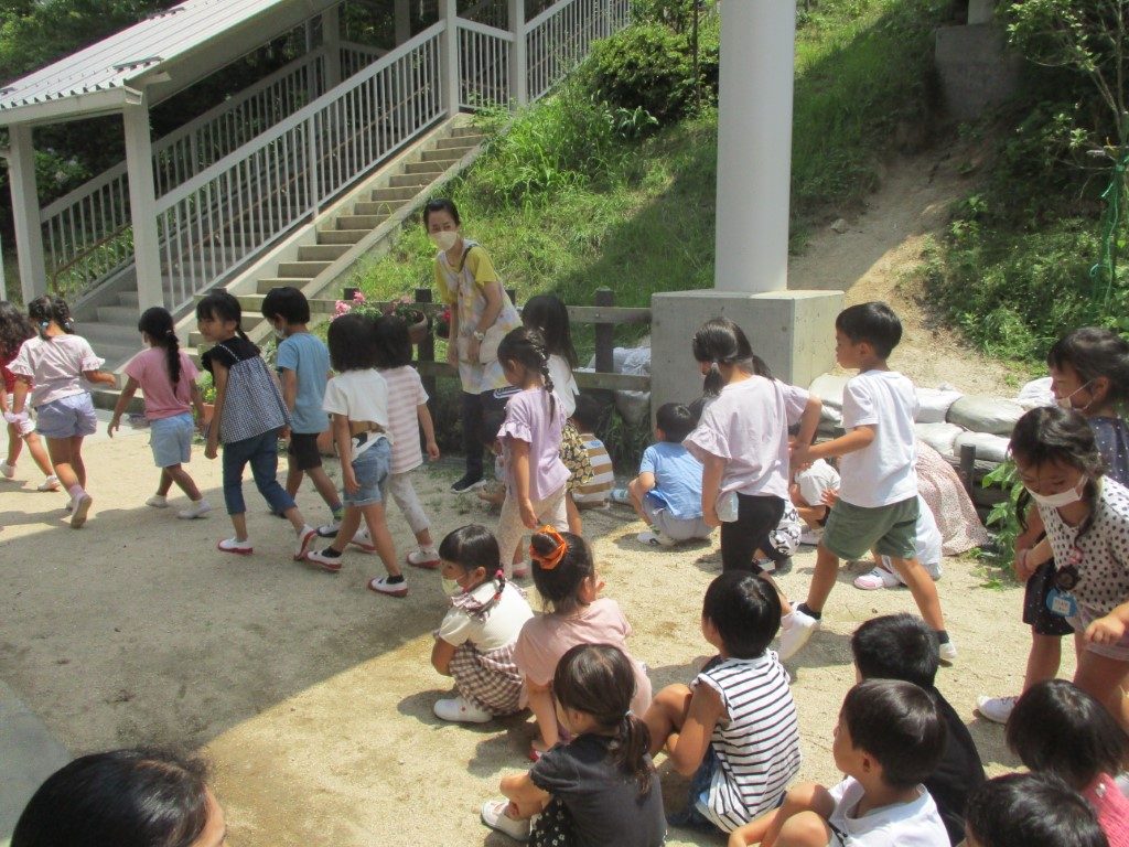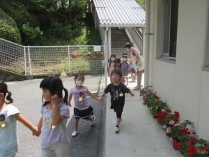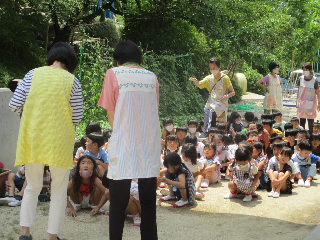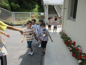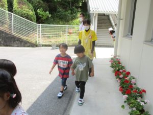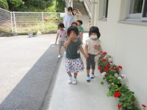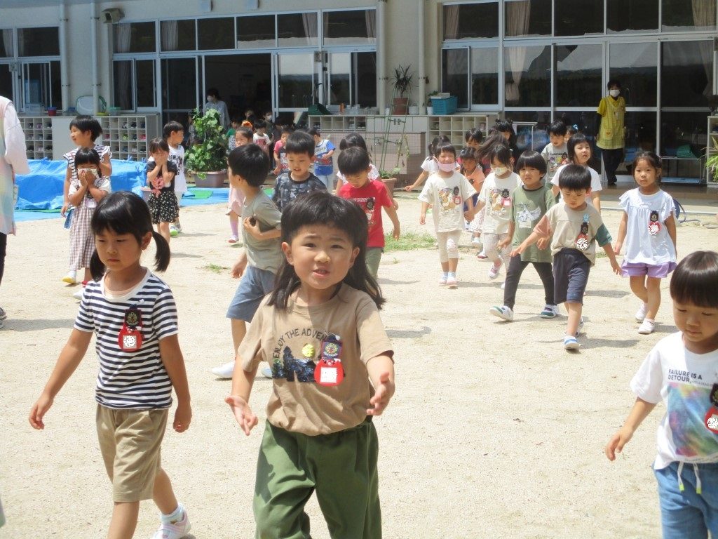 年中・年長児、訓練の想定内容をしっかり理解でき、