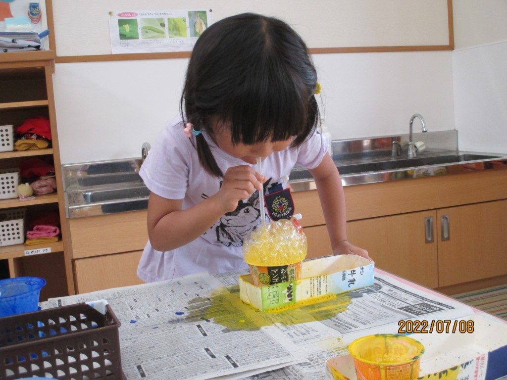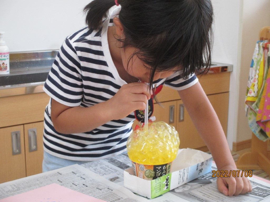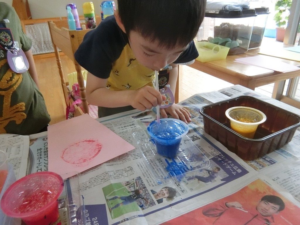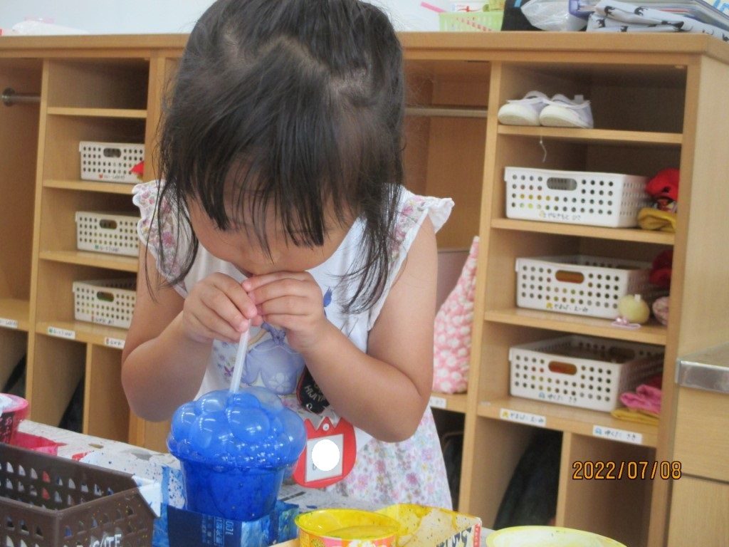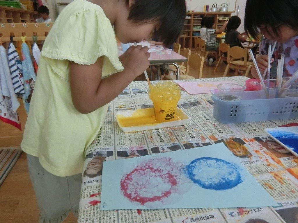 (青と赤の泡が混ざるとどうなるかなぁ…)