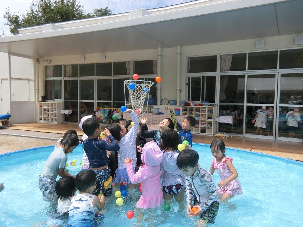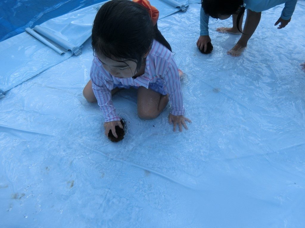 玉入れ大会やビー玉探し大会をしたプール。
