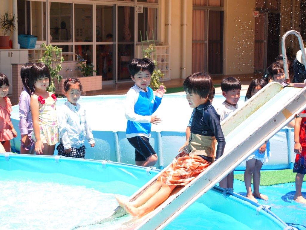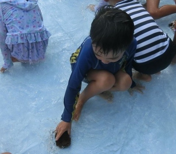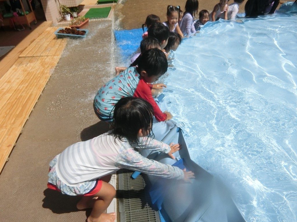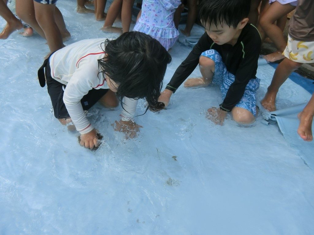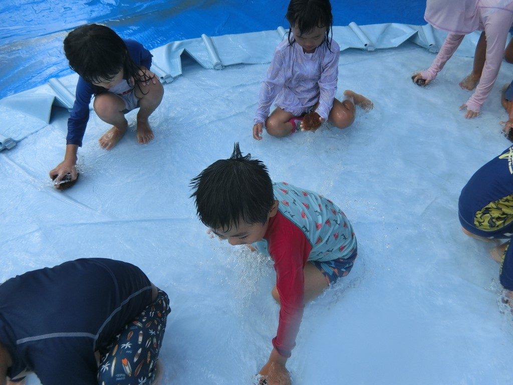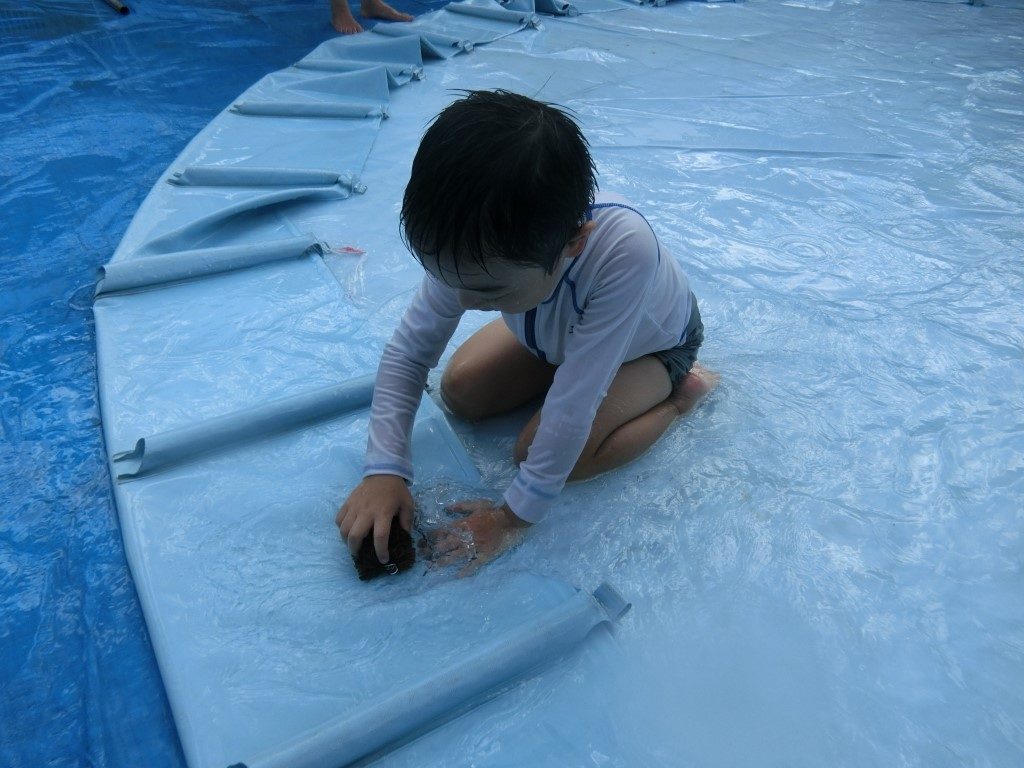 みんなでプールの水を出した後は、