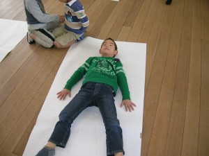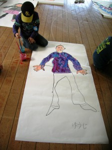 友だちと一緒に自分の等身大を作るという活動をしました。