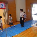 指導員の方のお話を聞きながら、近くの子とやり取りする姿もありました。