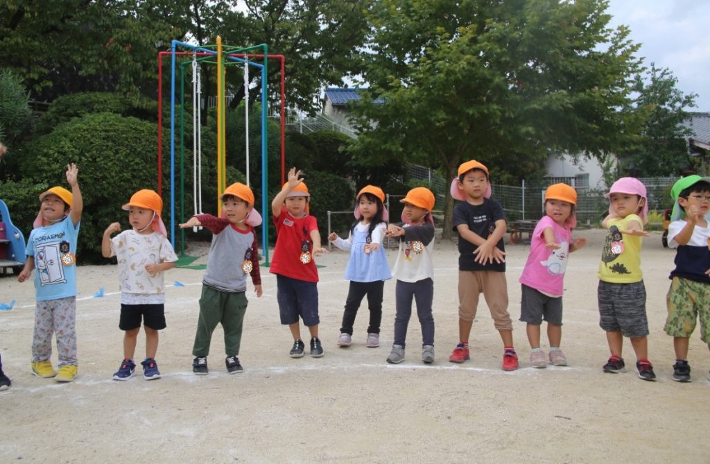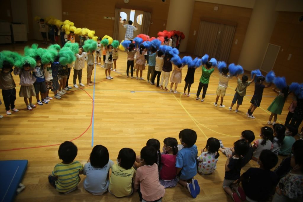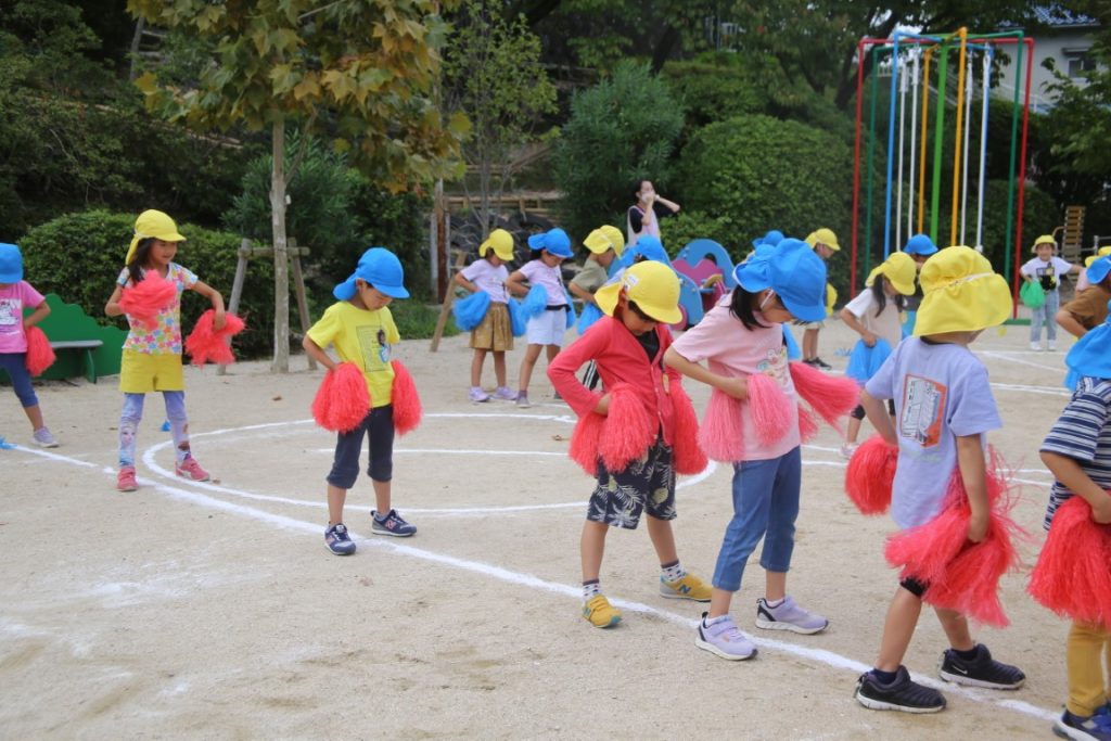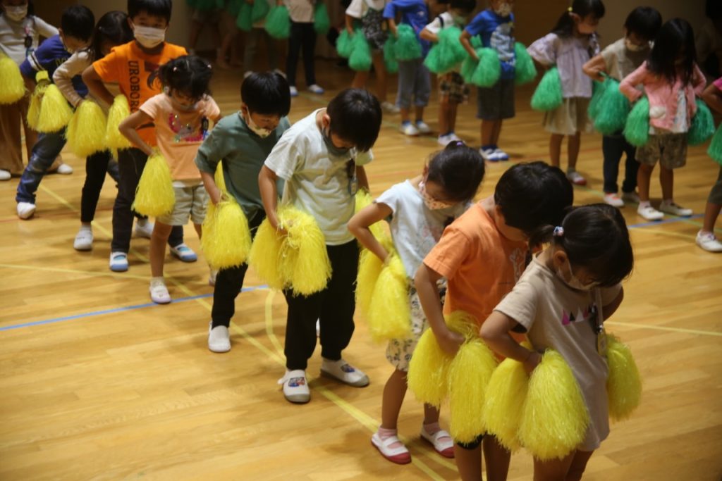 年長さんが、ポンポンの練習の真っ最中。