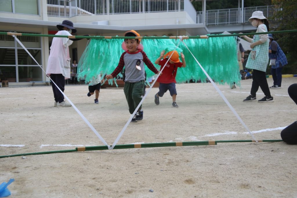 ゴールテープまで元気いっぱいな年少さん。