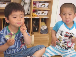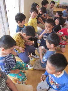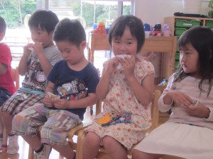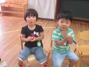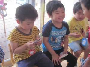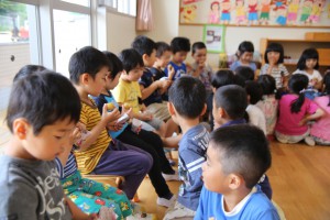 年中児には、ペアのお友だちが手渡ししてくれました。