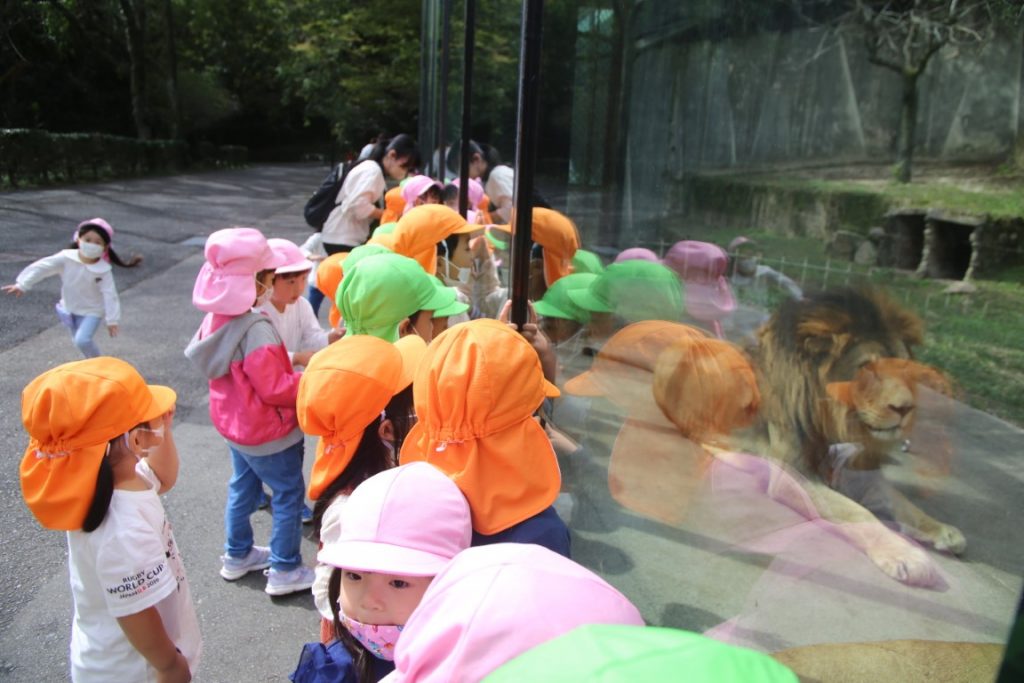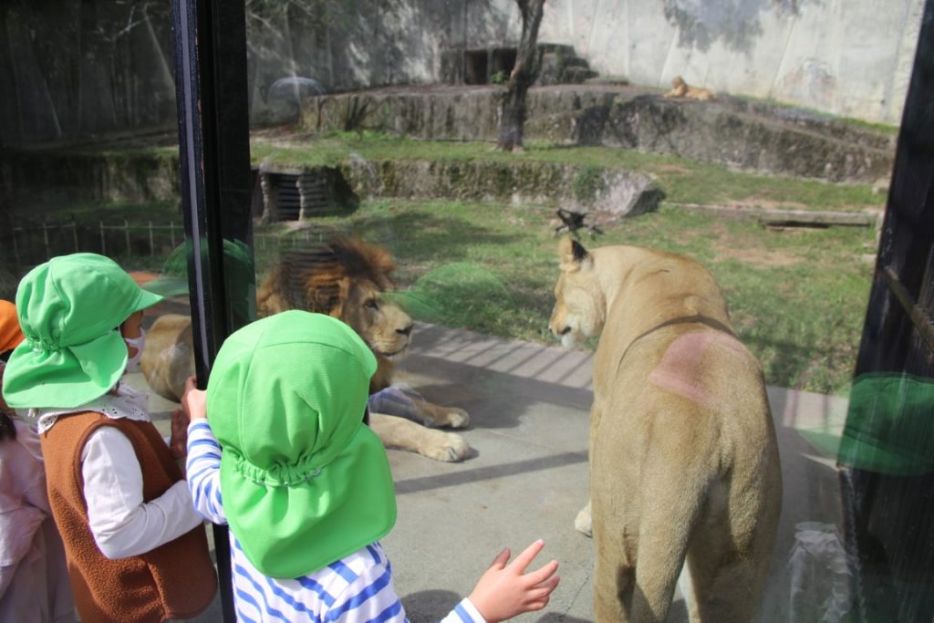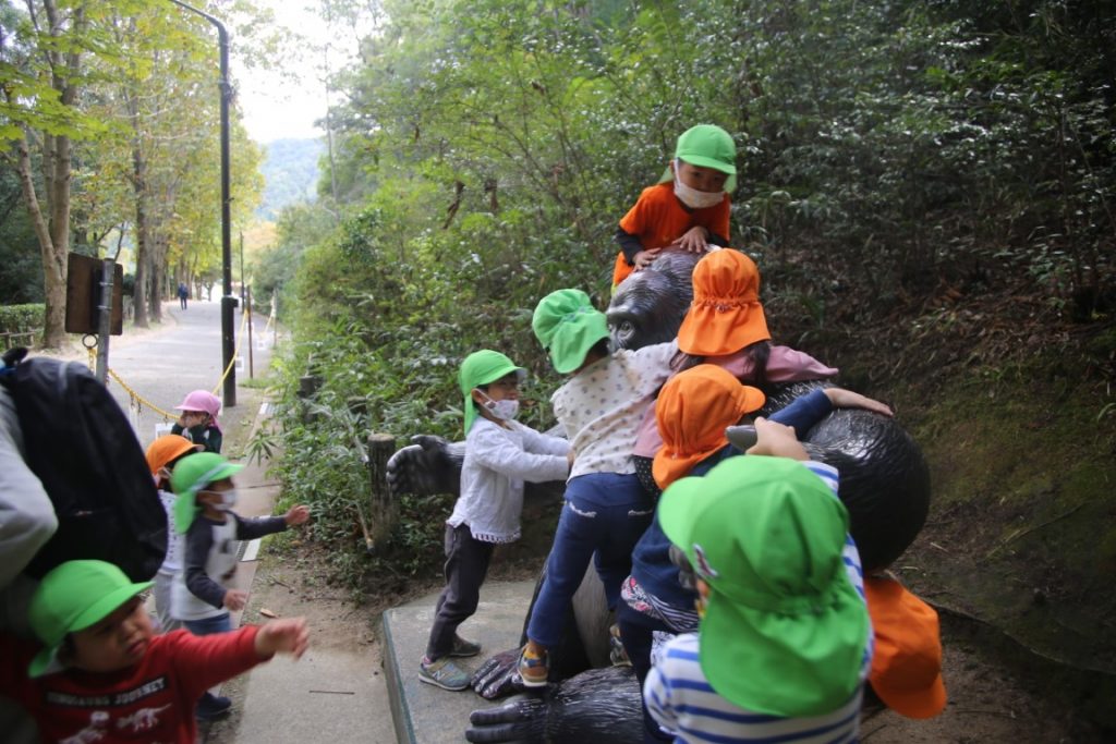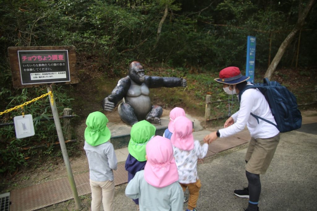「ヒヒ山のサルさん、こんにちは~~」と担任!