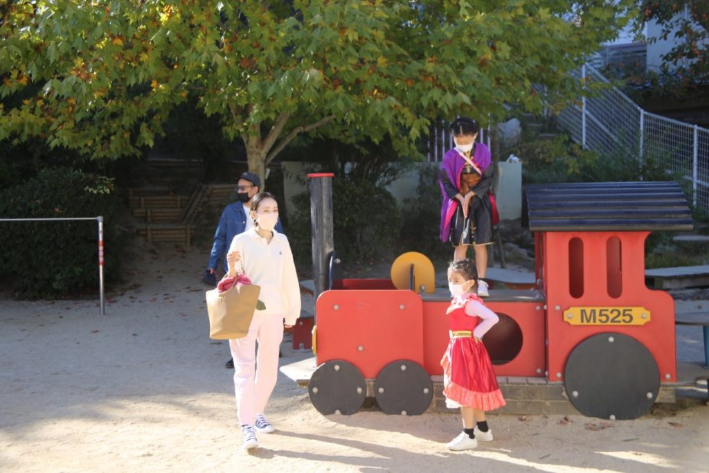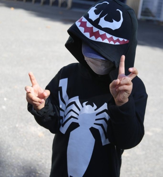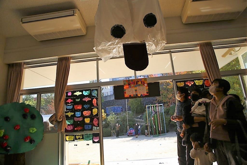 (子)「年長さんのお部屋はハロウィンなんだよ」