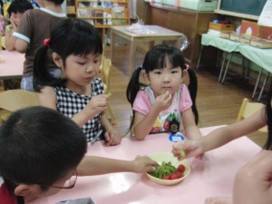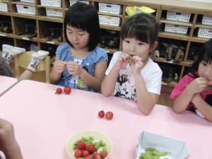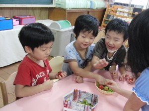 年長組では、春に夏野菜を植えて収穫の日を、今か今かと待ち侘びていました。